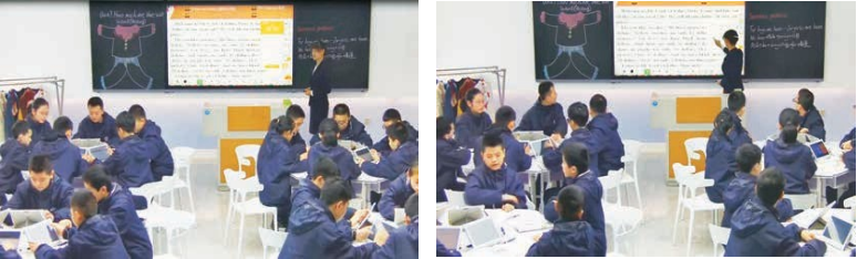 技术运用: 教师运用了希沃白板5的视频打点和希沃易课堂里的个性化推送。设计意图:尊重学生之间的个体差异,对学生进行分层教学。学生根据题目难度进行个性化选择, 对所学知识进行练习和巩固。挖掘学生总结能力和创造能力,学生们注意力更集中,学习更有效。