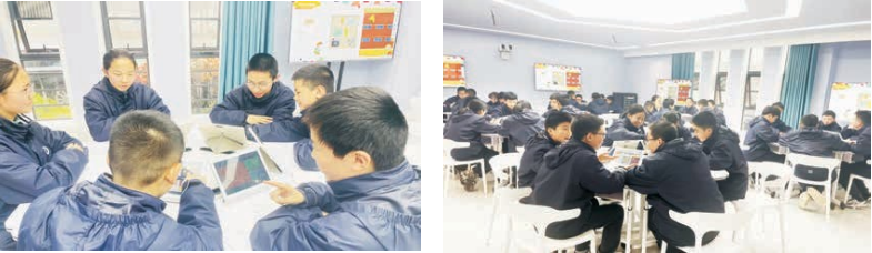 设计意图: 此环节既是对本节课学习的回顾和总结, 更是在学生掌握之后的拓展和升华。传统的小组合作任务型学习线下操作的过程中的确存在主题不明、讨论低效、参与度低的问题。小组合作学习中通常存在这样一个问题:组内的尖子生可以在短时间内高效、高质量完成任务,后进生却由于知识性能力的匮乏只能被迫“浑水摸鱼”,进而导致整体参与度很低。借助希沃易课堂,通过信息化技术让老师下发任务更明确,帮老师高效教学智能化给我们的教师和学生带来了一个全新的感觉和体验。老师通过教师空间下发小组协作任务到学生的学习终端,每一个组员都能在学生终端上进行编辑补充、沟通交流、思维碰撞,形成最终的小组合作结果。既培养了学生团结协作和发散思维的良好学习习惯,又提高了学生参与度,促进了学生思考,尊重了学生个体的发展。