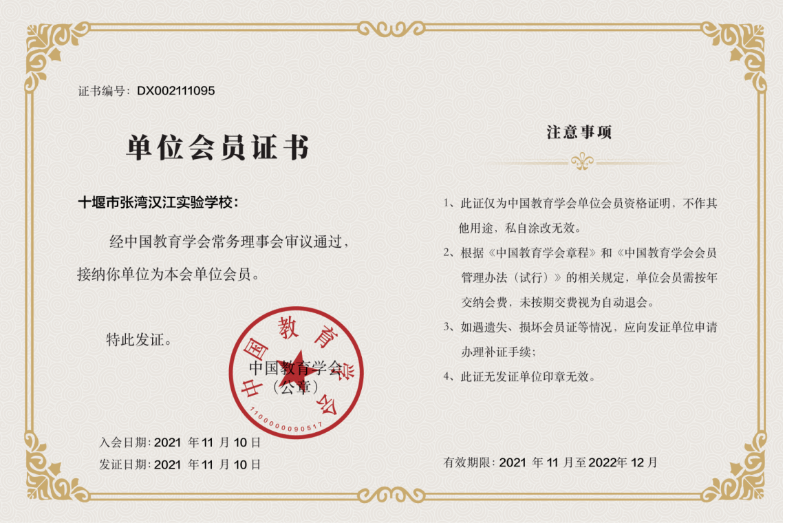 中国教育学会单位会员证书
