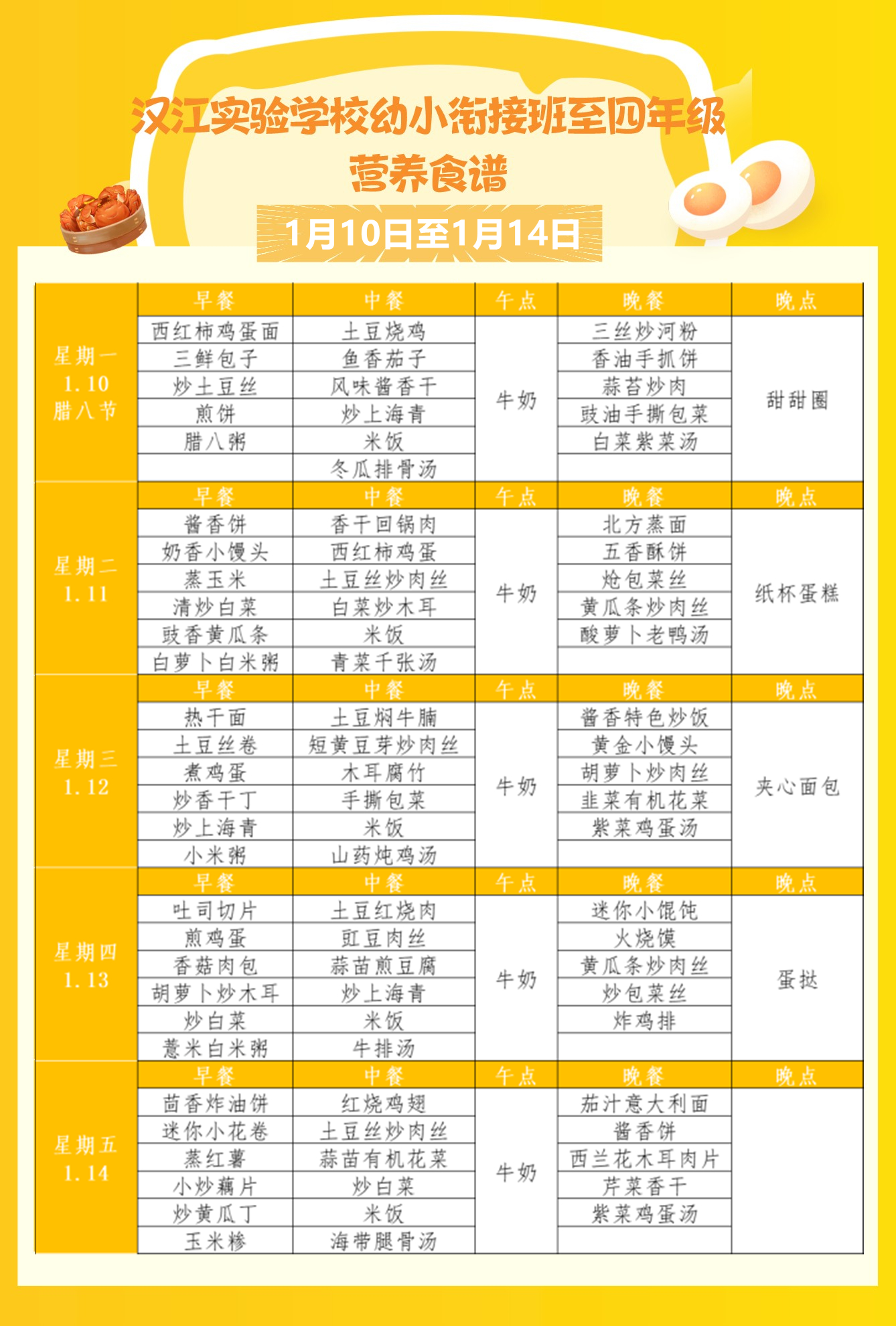 汉江实验学校2022年1月10日-2022年1月15日学生食谱公示