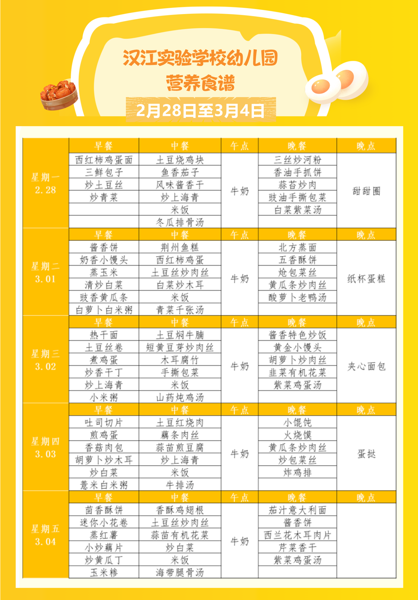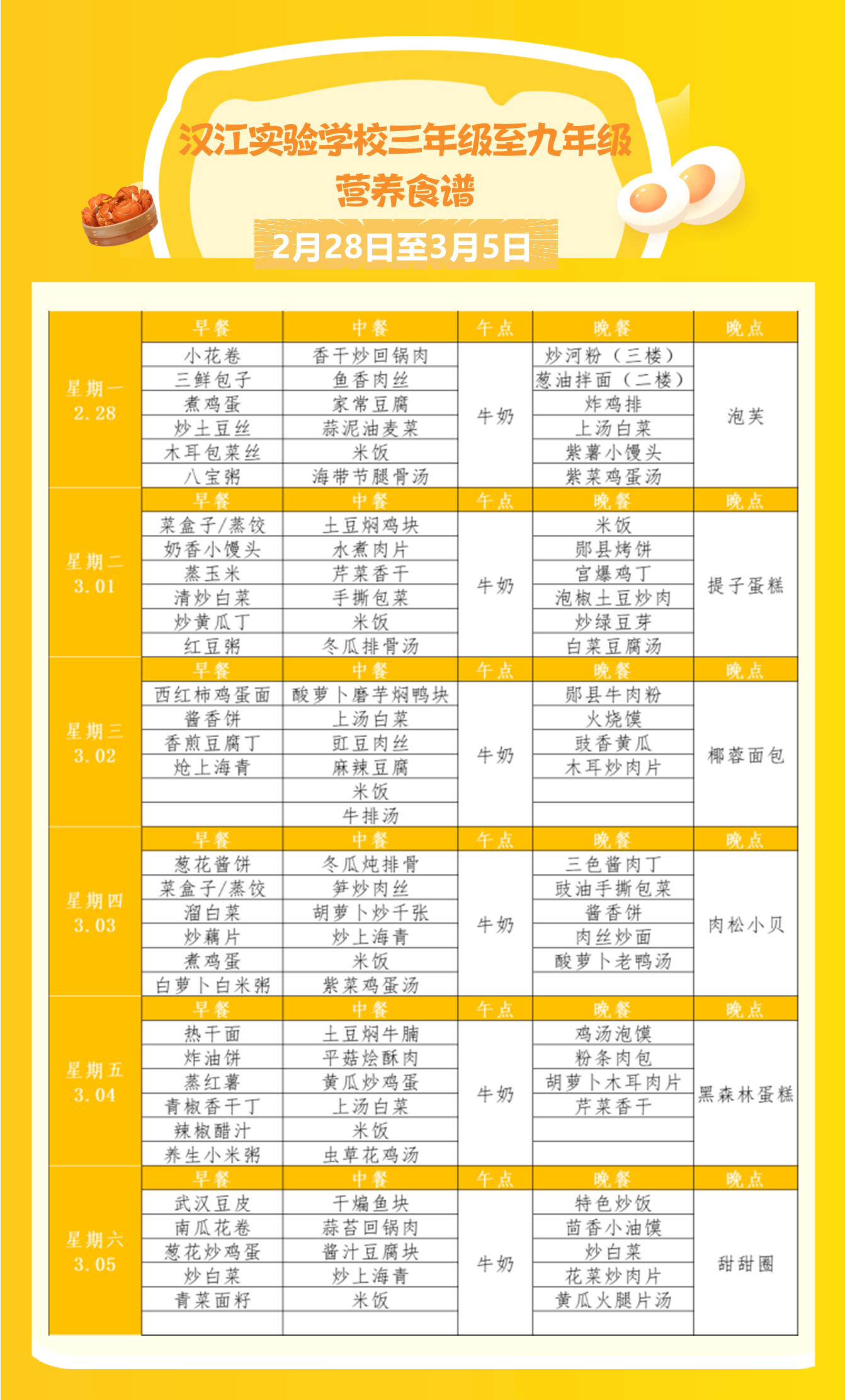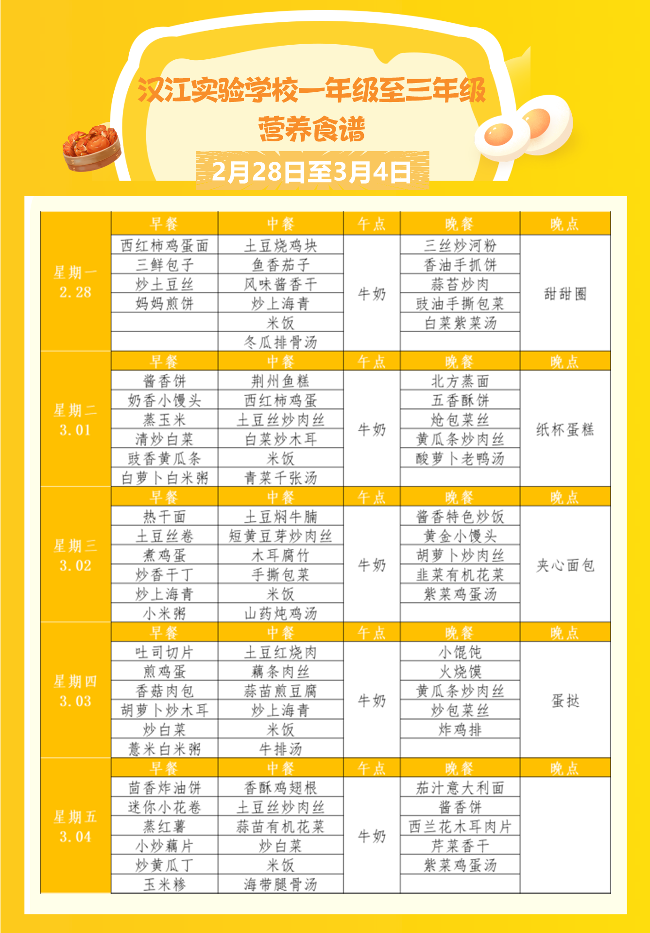 汉江实验学校2022年2月28日-2022年3月5日学生食谱公示