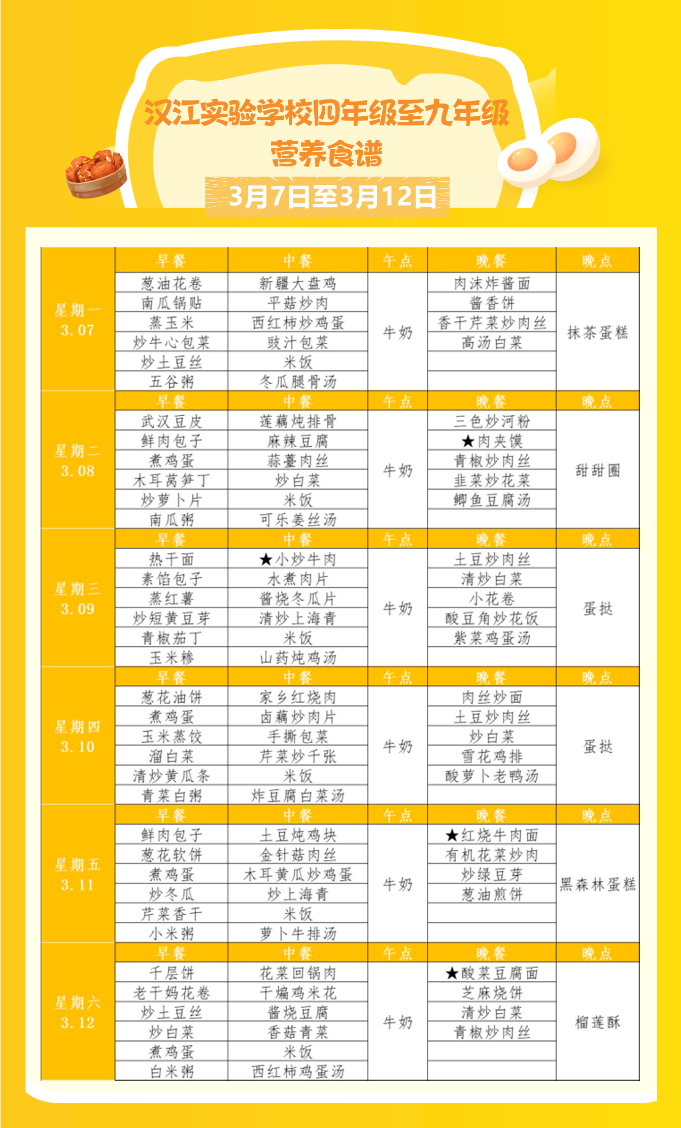 汉江实验学校2022年3月7日-2022年3月12日学生食谱公示