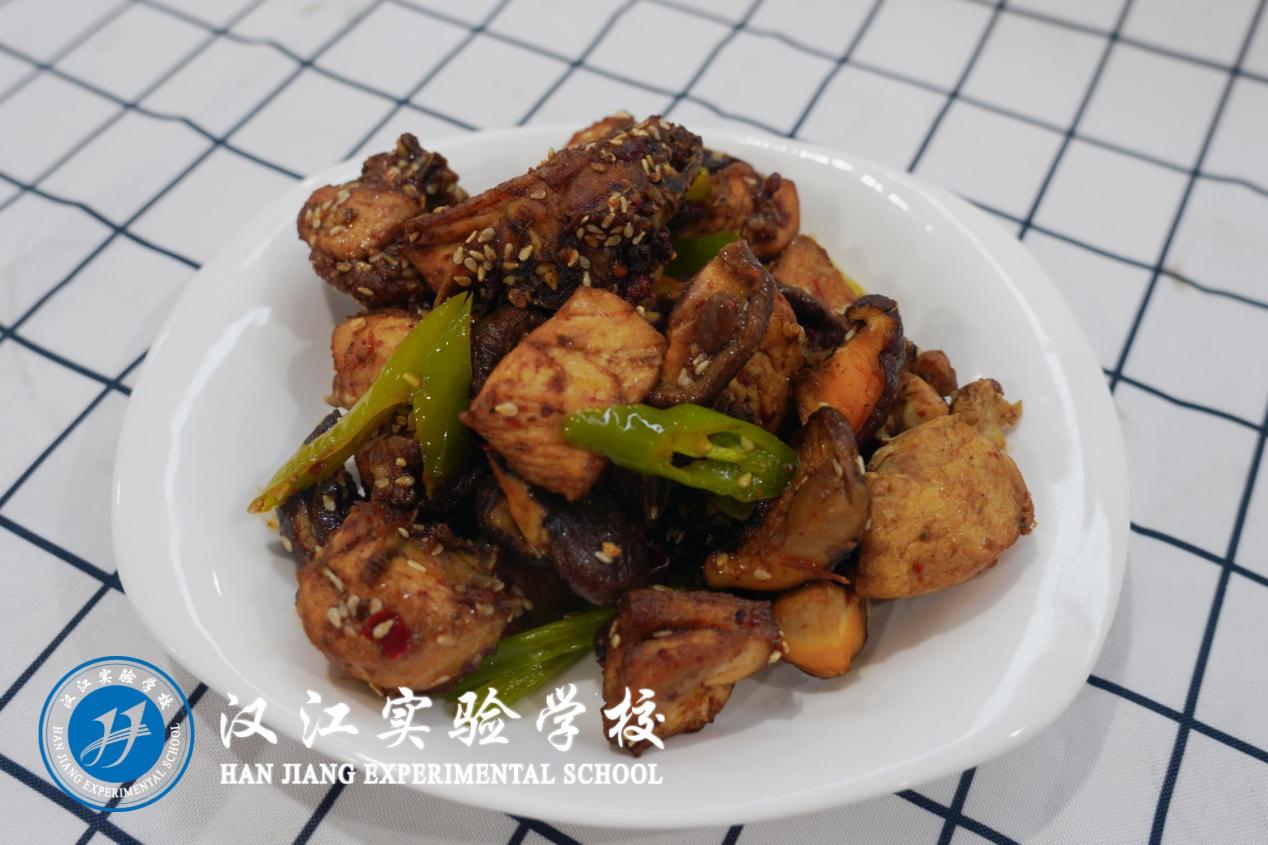 中餐:麻花煸鸡块、羊肚丝炒肉丝、西红柿炒蛋、麻辣豆腐、米饭、蒜苗菌菇汤