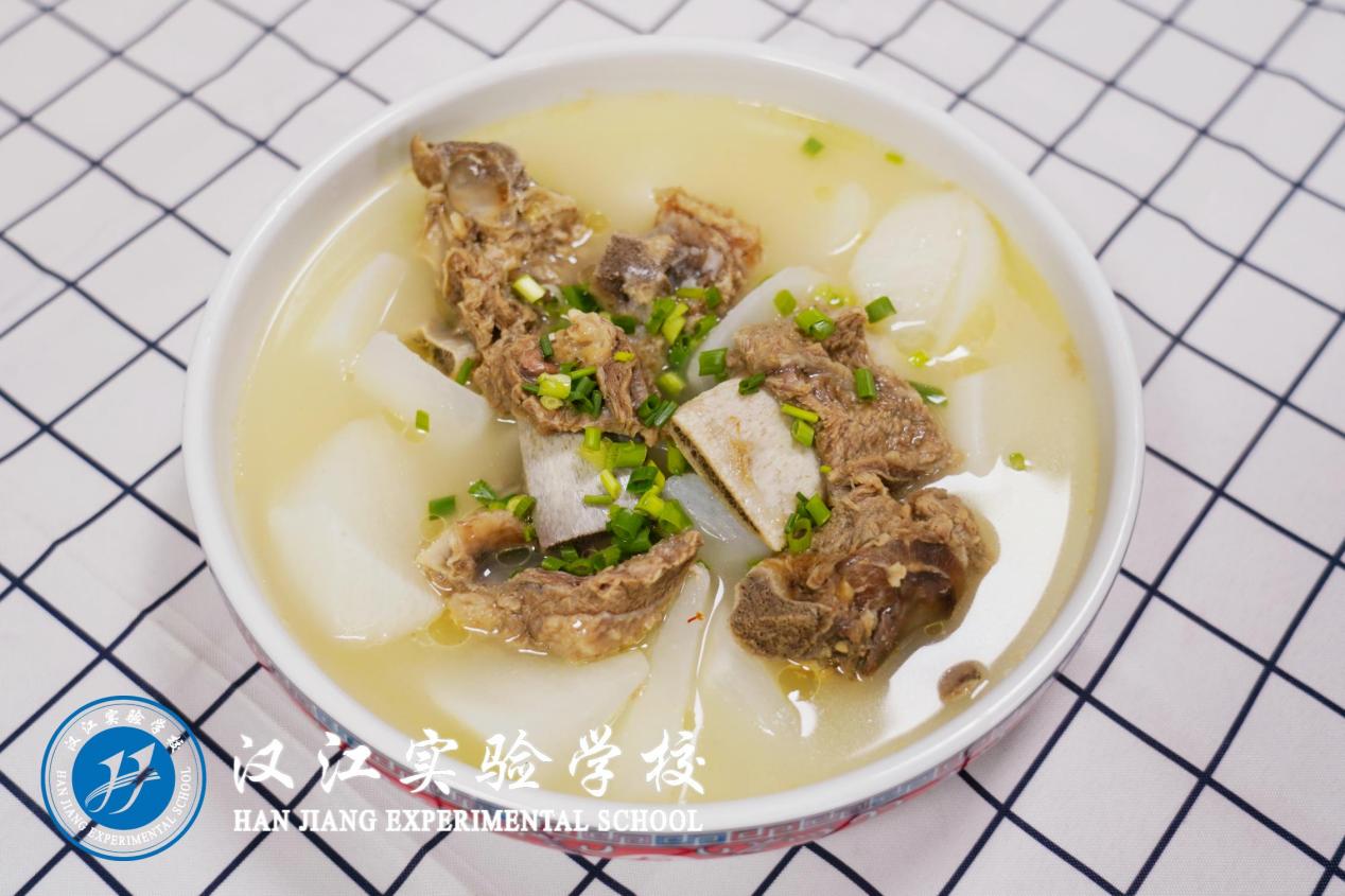 中餐:红藕炖排骨、短黄豆芽炒肉丝、白菜炒千张、炒土豆丝、米饭、鱼头豆腐汤