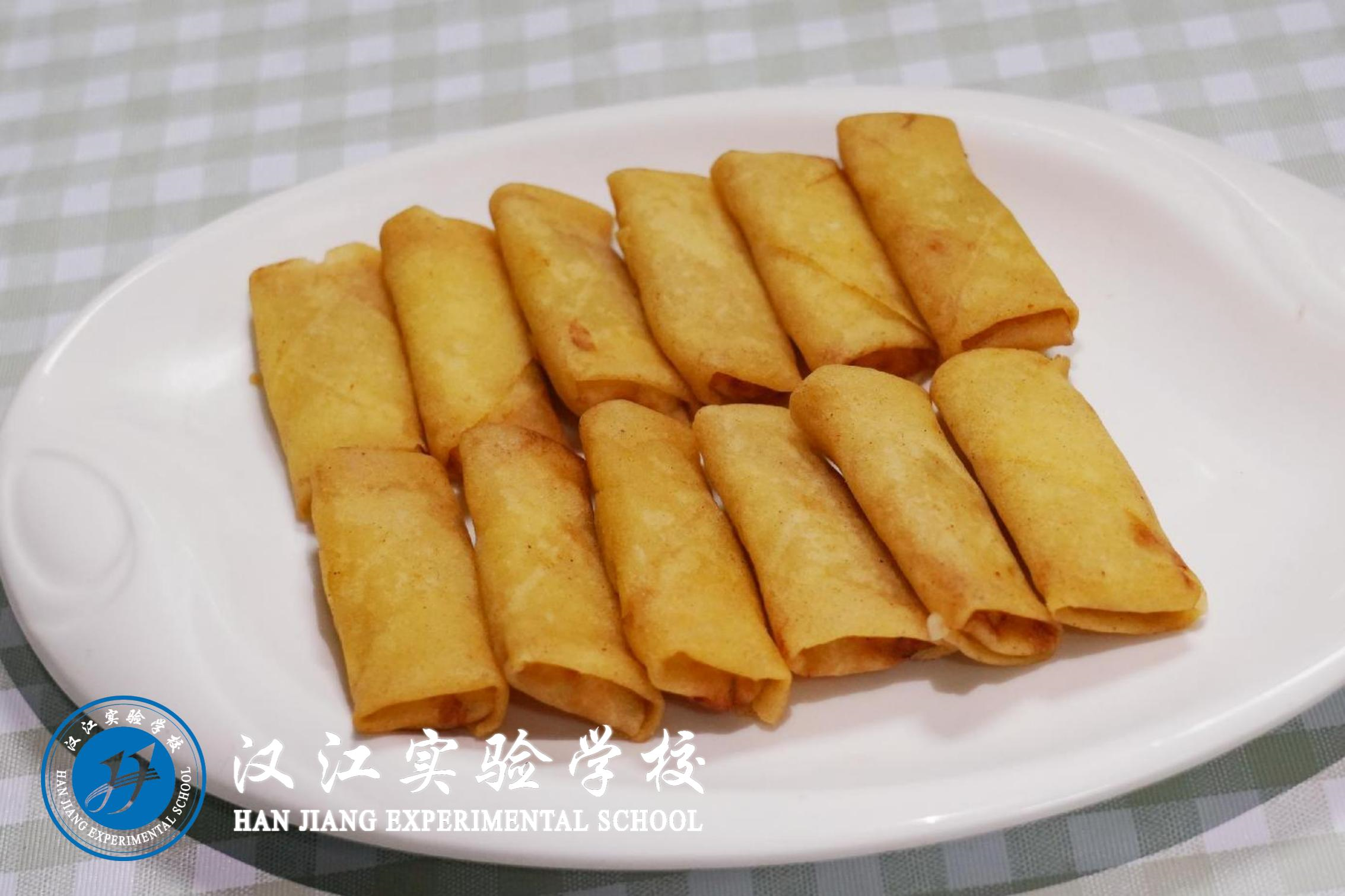 晚餐:台湾香肠炒饭、雪花鸡排(4—6年级)、炸春卷(1—3年级)、木耳炒肉、豉油手撕包菜、西湖牛肉羹