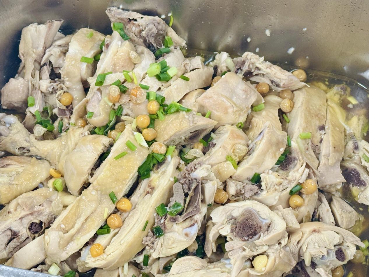 晚餐:鸡丝拌面、奶黄包、香干肉丝、炝炒油麦菜
