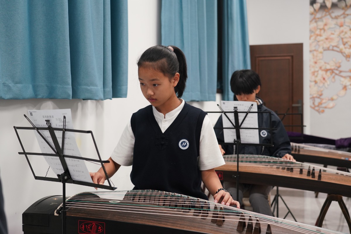 本校古筝社团会针对有基础和无基础的学生进行分组教学。对于有古筝基础的学生进行基本功的巩固、对乐曲的理解;对于零基础的古筝学员会按照以下步骤进行教学:理论讲解——教师示范——学生练习——小组练习——教师巡回指导——参加表演活动。