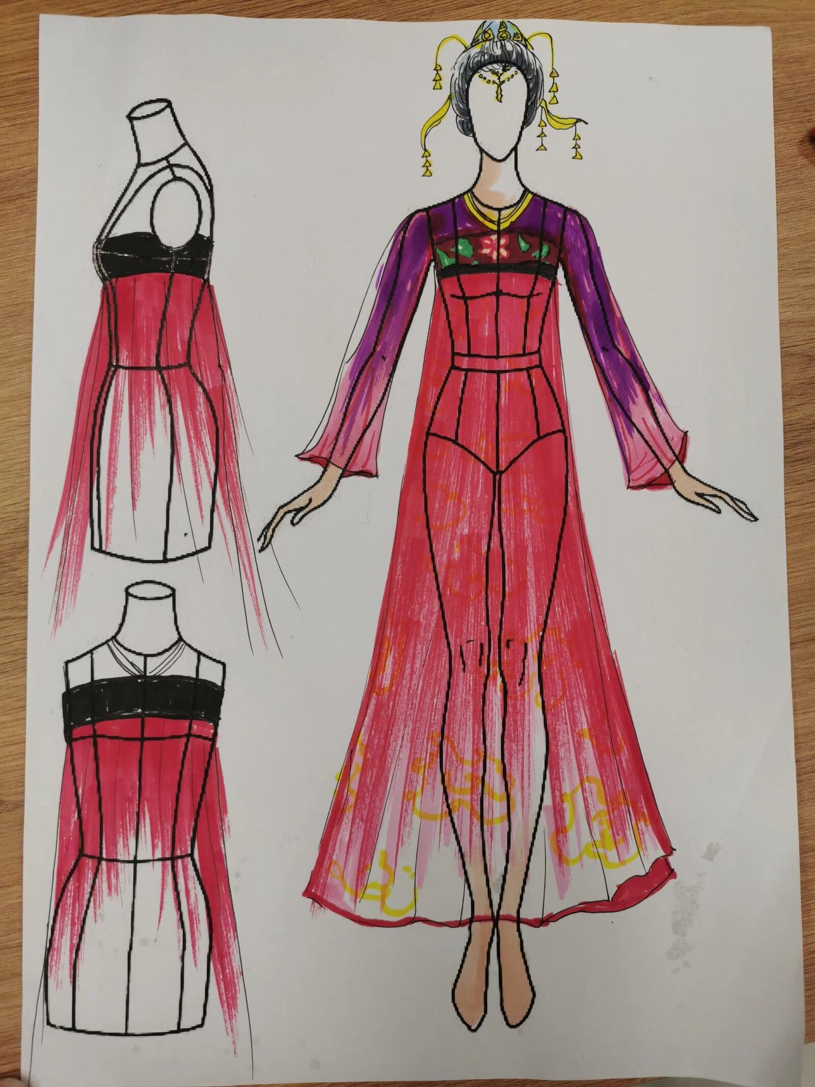 以培养孩子们的创新精神与动手能力,丰富学校的校园文化。服装设计社团主要学习中国传统服饰——汉服,与以汉服为设计基础的汉元素服装。本学期服装设计社团学习主题为“隋唐风采”,对南北朝、隋、唐、五代十国时期服饰风格特点进行了解学习,结合自身需求与实际情况进行汉服与汉元素设计,并将设计的服装制作出来;在服装制作过程中,将产生的剩余废弃布料收集起来,在服装制作完成后将其制作成不同样式的饰品,以培养学生勤俭节约、变废为宝的好习惯。