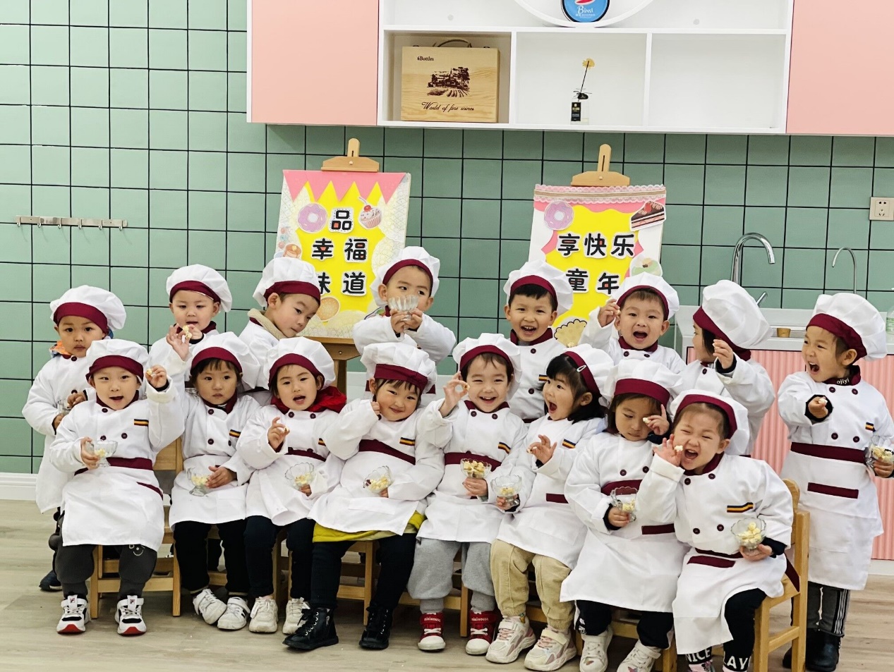 孩子们围坐在一起共同举杯,分享着童年的甜蜜,活动结束后,也将自己的一份爱意传递给自己的爸爸妈妈。