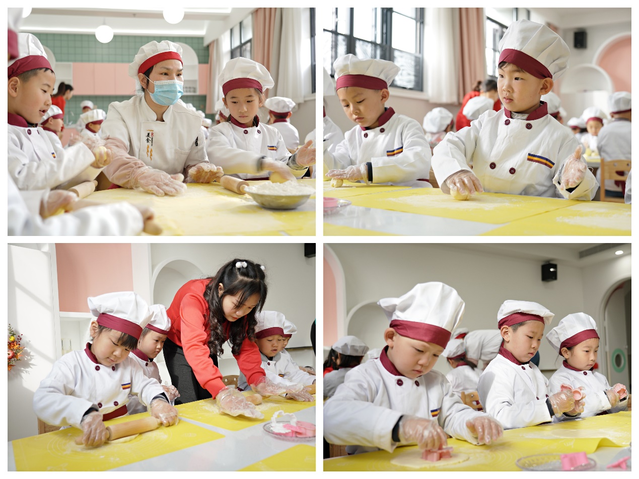 在孩子们的欢呼声中,汉江幼儿园手艺一流、技艺高超的糕点师闪亮登场,糕点师们的细心讲解,耐心指导,孩子们用灵巧的双手做出形状各异、别具一格的饼干。