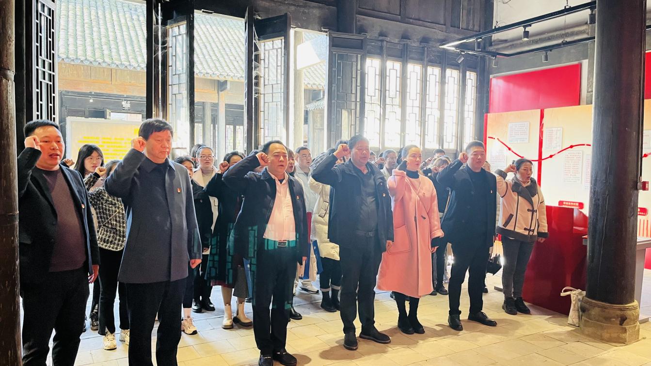 在政治生活馆,全体党员面向党旗作庄严宣誓“我志愿加入中国共产党,拥护党的纲领,遵守党的章程……”。
