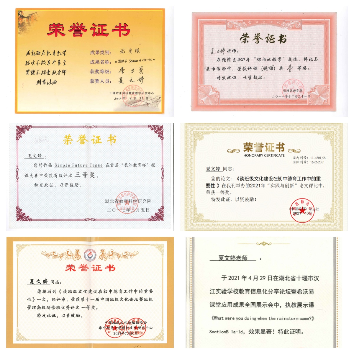 夏文婷,中共党员,国家三级心理咨询师,教育部“一师一优课”省级优课教师,2023年荣获“张湾区骨干教师”,获省、市级微课大赛一等奖,获张湾区“师艺杯”比赛一等奖,论文在省、市、区获奖。现任汉江实验学校初中部教师发展中心主任、英语教师。从教13年,有多年毕业班经验。教育注重教学与信息技术深度融合,教学技艺精湛,业绩优秀,获希沃杏坛三星讲师称号。
