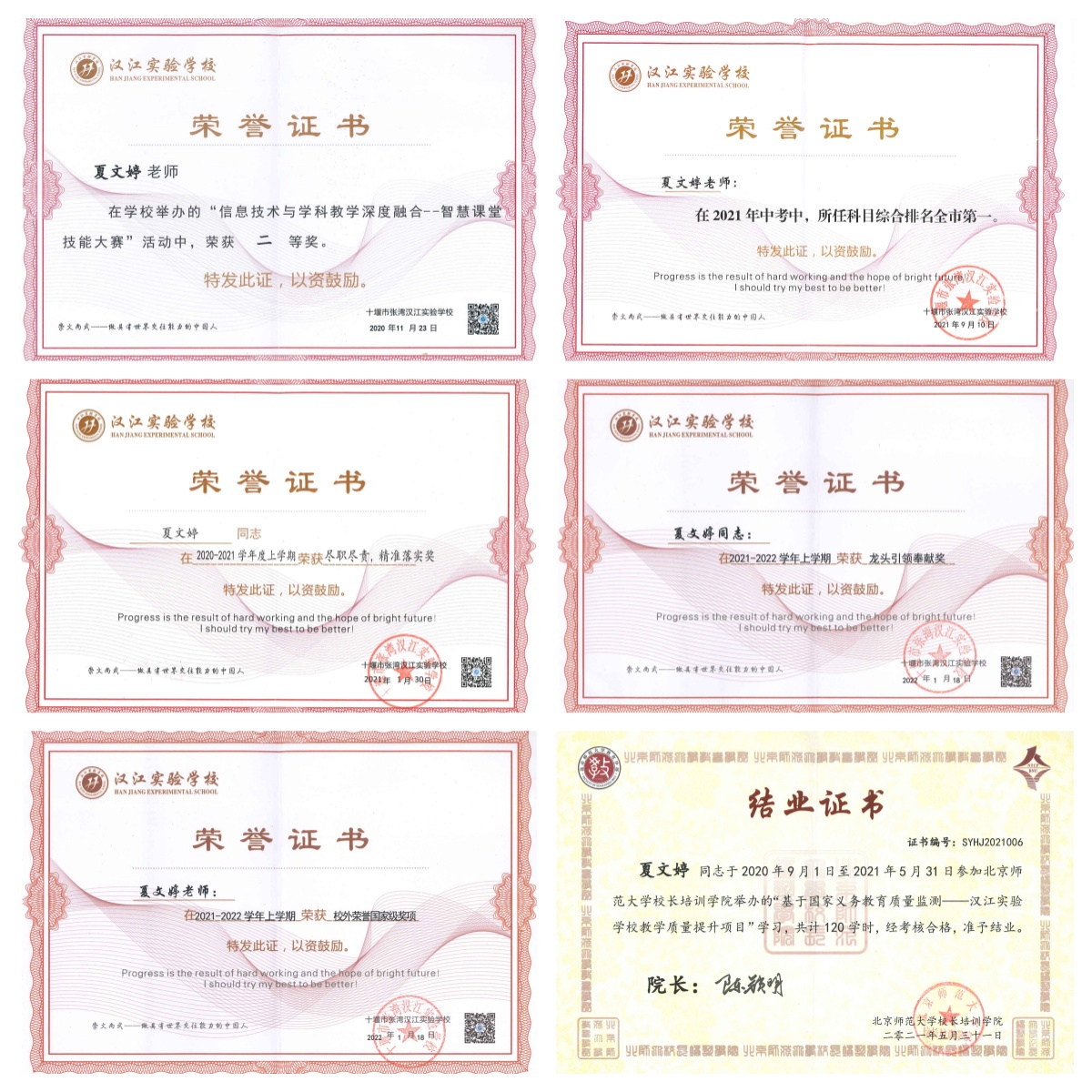 夏老师严谨治学带来教学质量的提升,赢得了学生、同事、家长、社会的一致好评。她认为教育的温度在于心中有爱,一次温暖的抚摸,足以消除孩子内心的恐惧;一次温暖的鼓励,足以建立起孩子的自信;一次温暖的交流、一个简单的问候,足以重新点燃孩子的希望之火。