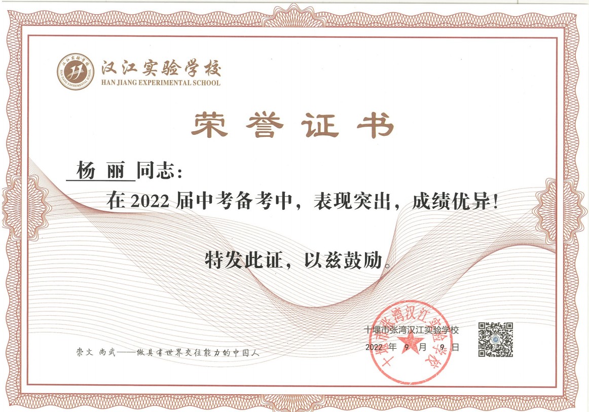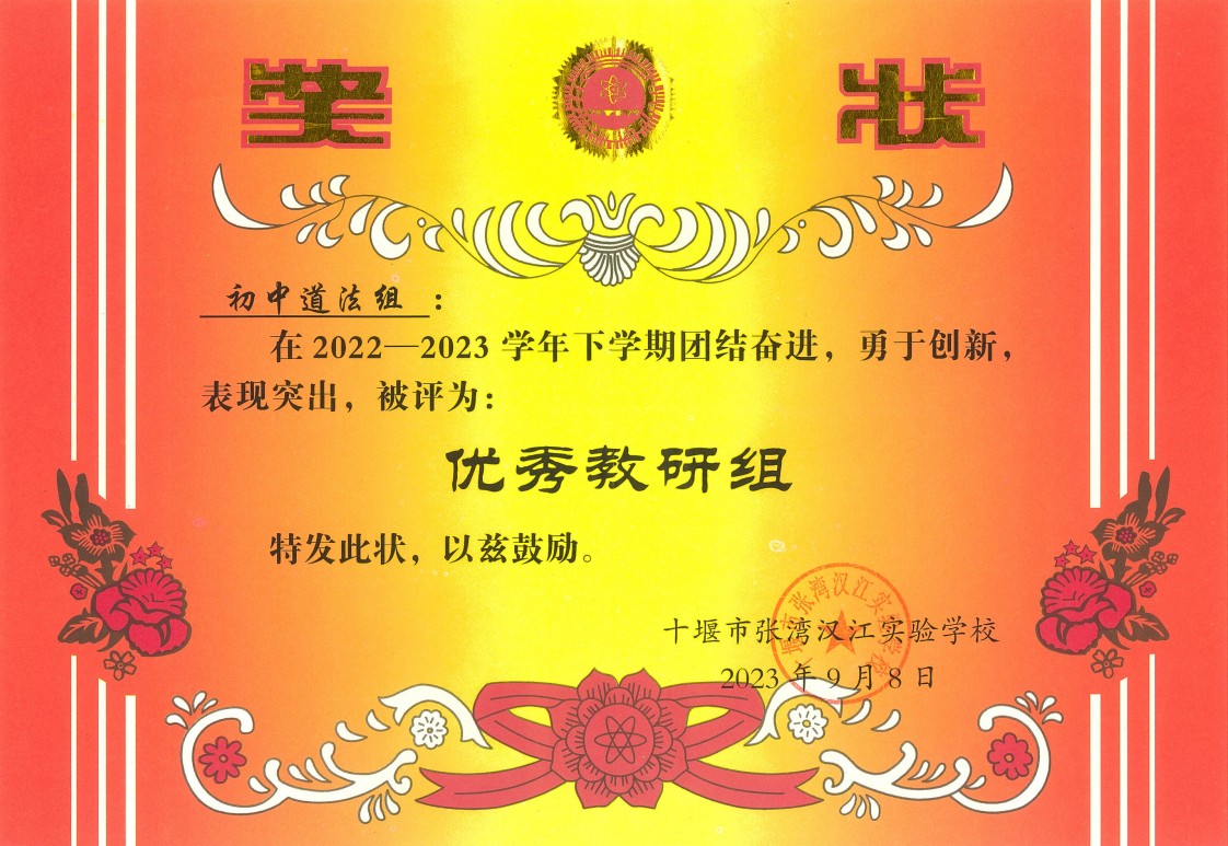 深耕硕果,载誉前行。杨丽老师撰写的论文《走进法治天地》《公平正义的守护》荣获湖北省一、二等奖;在2024年张湾区第一届“我为中考命题”评选活动中,她与同组老师共同命制的道法试卷荣获一等奖。