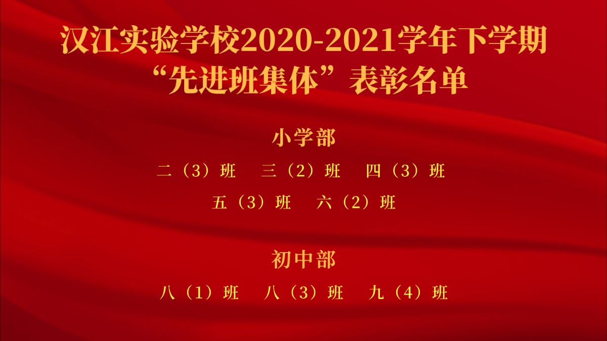 汉江实验学校2020-2021学年下学期“先进班集体”表彰名单