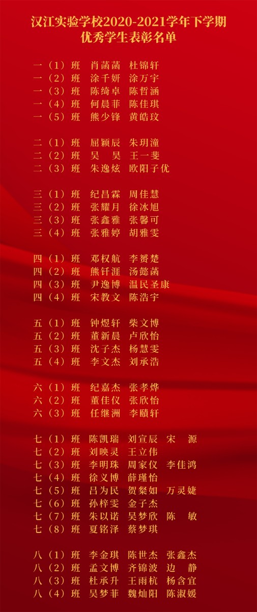 汉江实验学校2020-2021学年下学期期末评优表彰名单