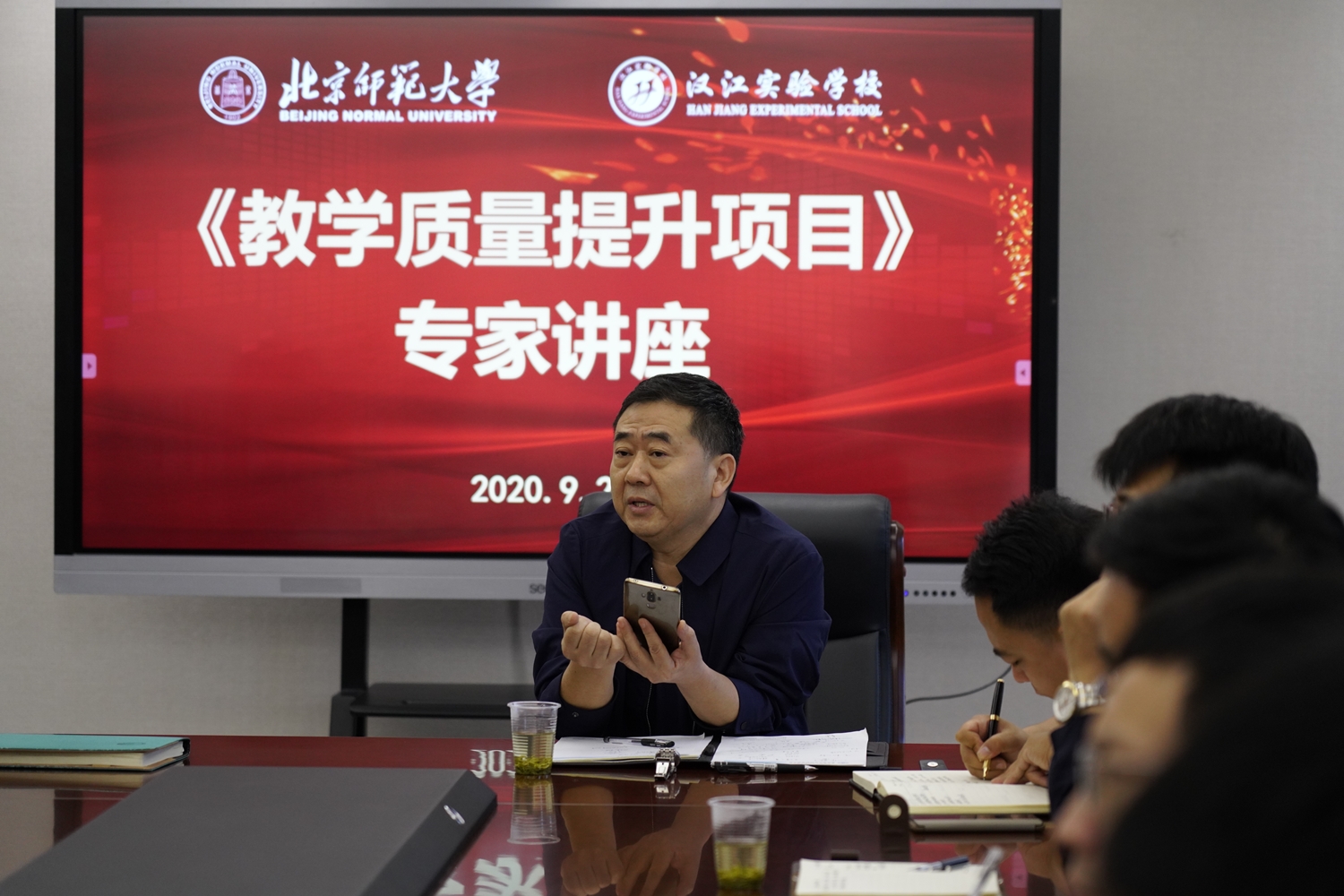2020年9月21日,教育部基础教育质量监测中心培训项目负责人、《北京师范大学——汉江实验学校教学质量提升项目》负责人、北京师范大学陈锁明教授在我校开展项目调研 过程中,在我校领导的陪同下深入到三年级、九年级的语文课堂听课指导,了解教师课堂教学情况。听课结束,陈教授针对教师的课堂教学实际,围绕如何提高中小学语文教学质量进行全面指导。