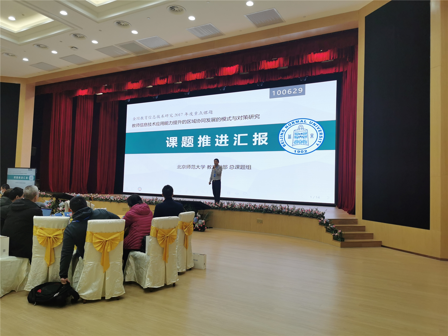 北京师范大学合作办学平台“数字化教育研究共同体”指导专家朱京曦博士作“教师信息技术应用能力提升的区域协同发展模式与对策研究”课题推进报告,他指出:教师信息技术应用能力提升应从“应用信息技术优化课堂教学及转变学习方式”两方面入手,解决老师“善不善用”、“肯不肯用”、“会不会用”的问题,实现从“简单应用到深度融合的转变”、“从盲目应用到合理应用的转变”、“从基本不用到日常应用的转变”。