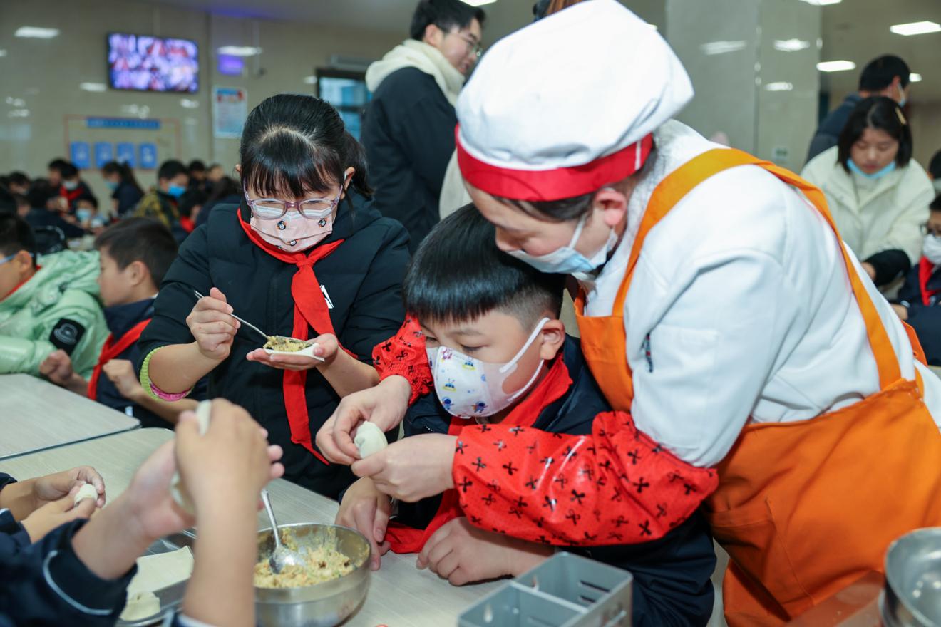12月20日下午,汉江实验学校初中部和小学部组织学生在学校食堂举行了一场别开生面的包饺子活动。
