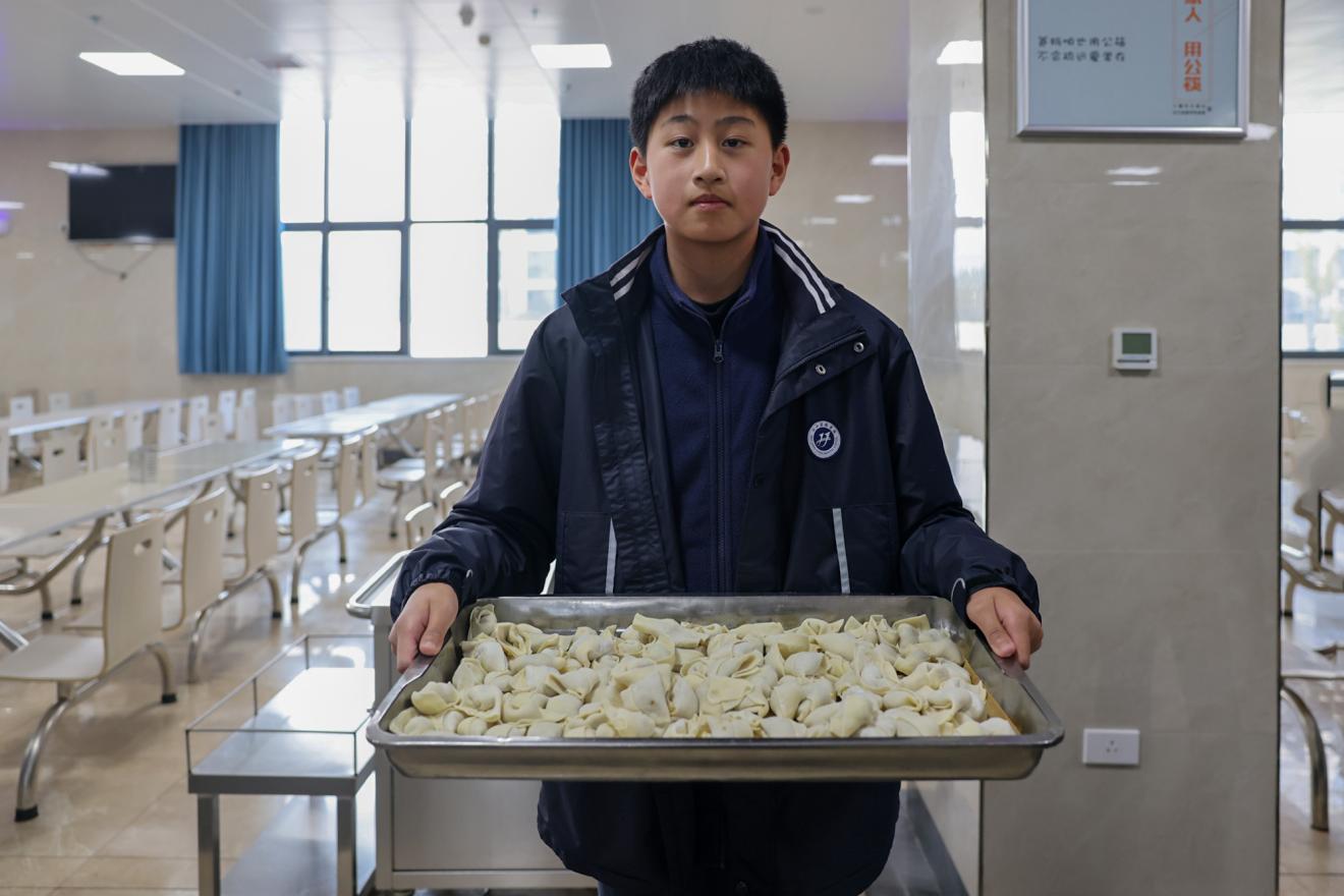 各班老师组织学生有序进入餐厅,做洗手准备。开始前,生活老师通过播放包饺子视频,让同学们对这一传统活动有了初步的了解和认识。每个班级分成6个小组,并推选了4名包饺子“小师傅”进行技术指导。