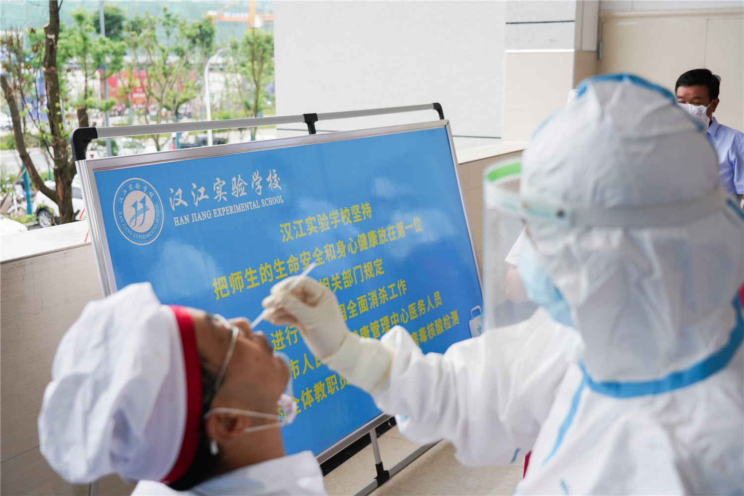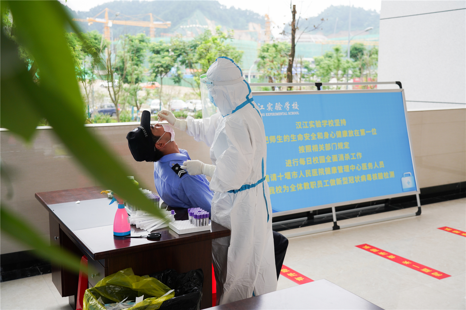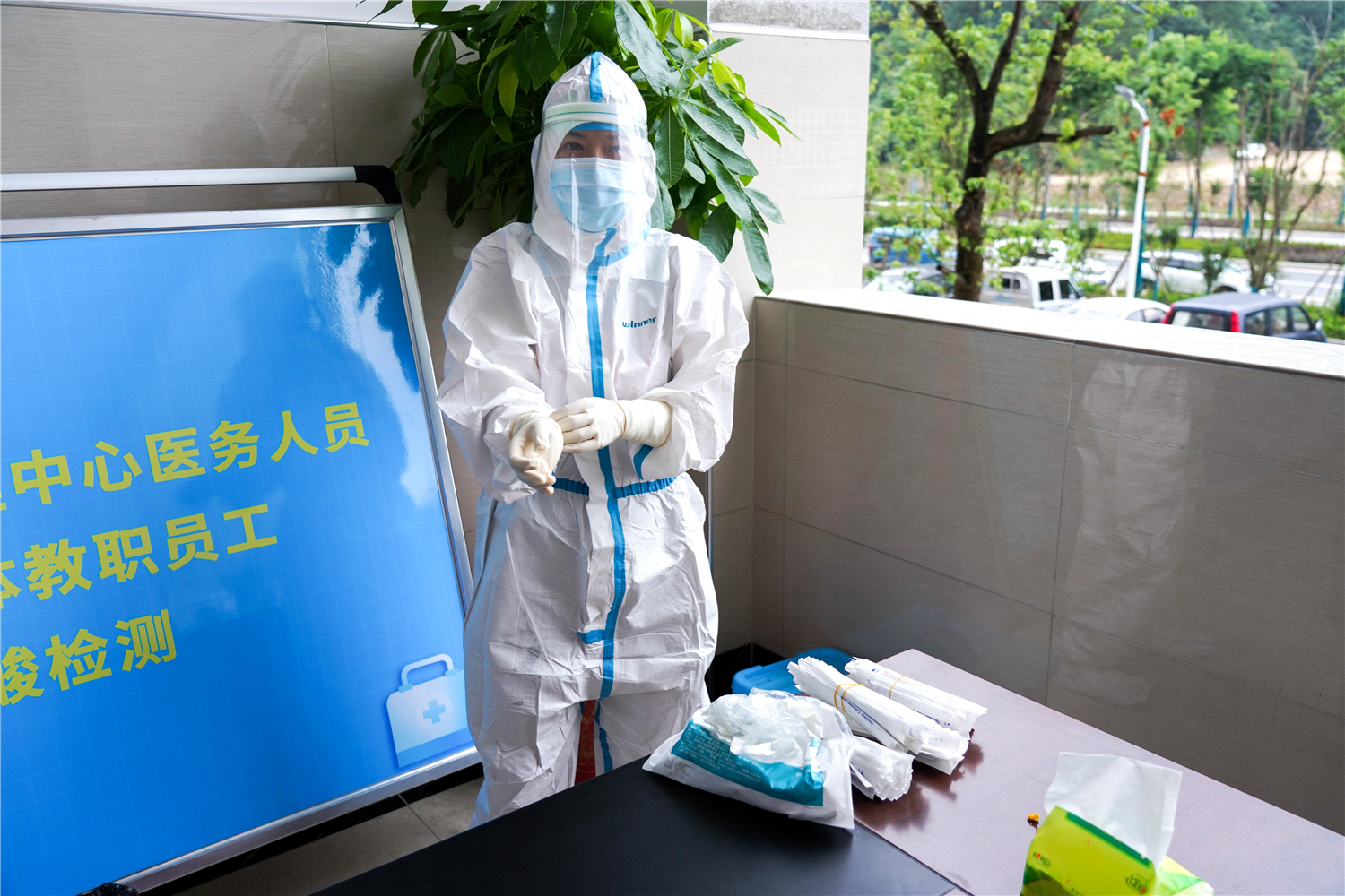 市人民医院健康管理中心医务人员到我校为全体教职员工进行核酸检测