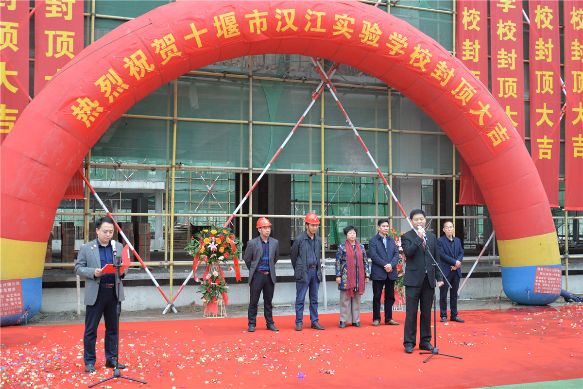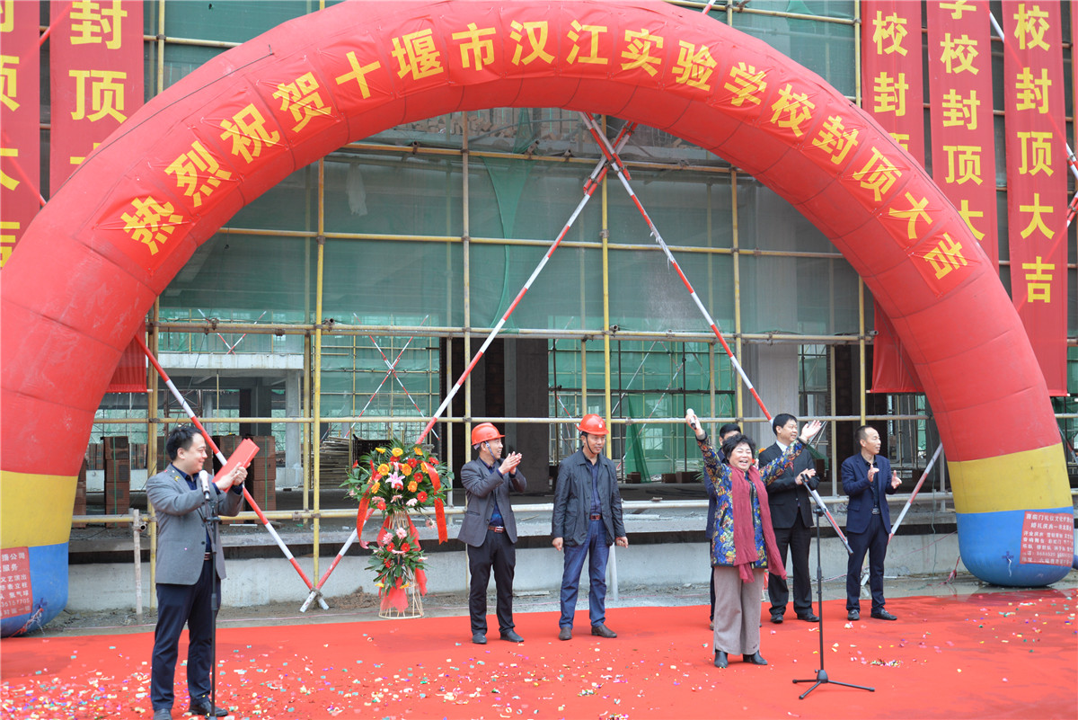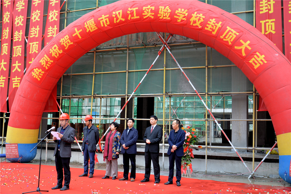 随后,我校董事长何蕾宣布汉江实验学校主体工程荣耀封顶。随着礼乐奏响、礼炮连鸣,庆贺条幅迎风飘扬,我校建设项目主体工程正式封顶。