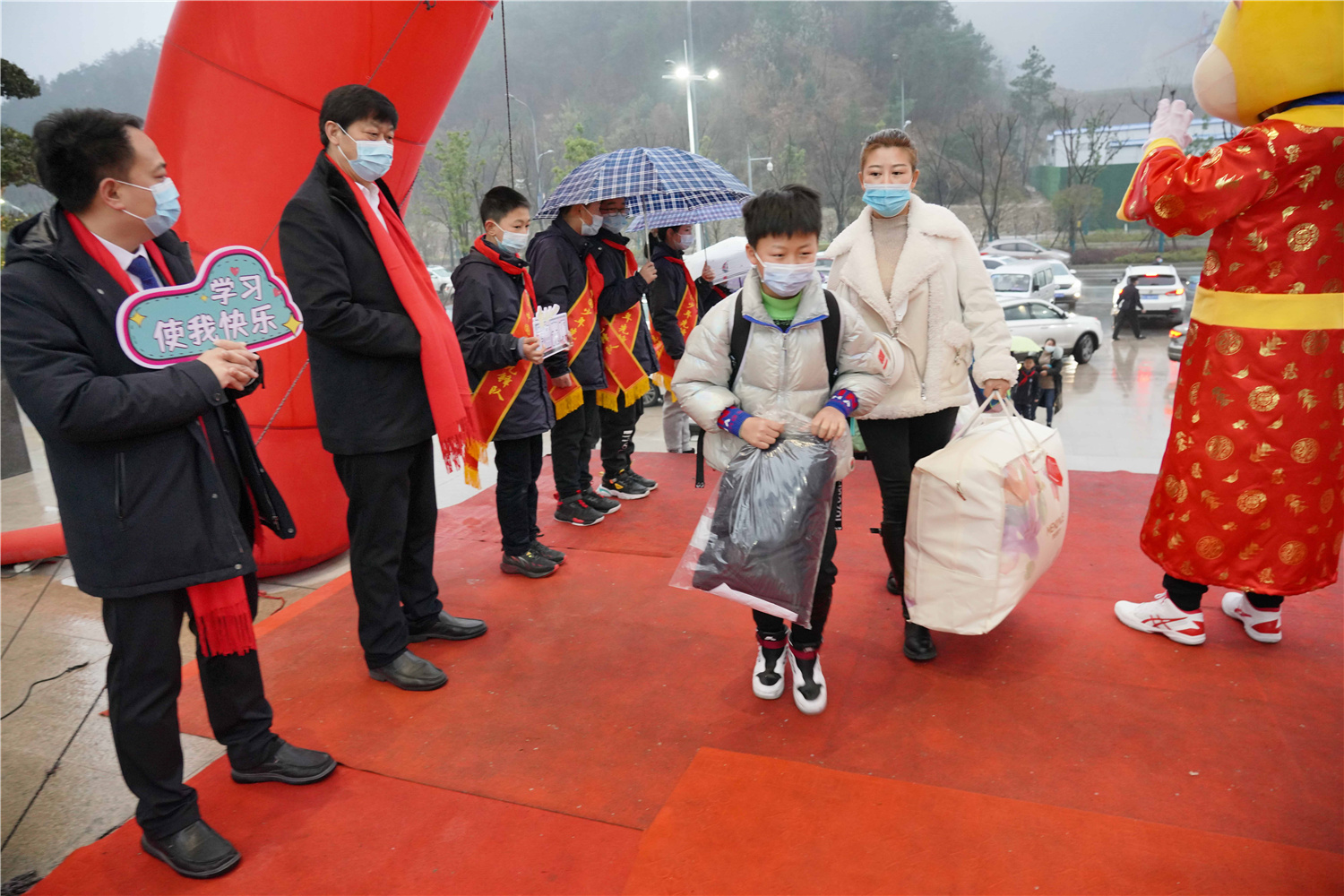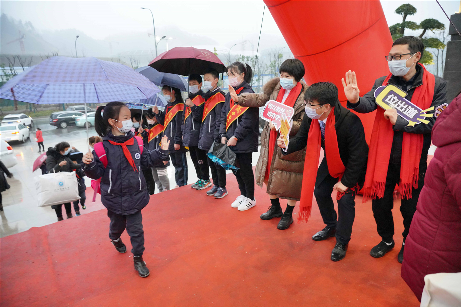 假期的欢乐余韵未尽,全新的号角已然吹响。2021年2月27日至28日,汉江实验学校小学部和初中部的孩子们,伴随着欢快的新春脚步,和着轻快的音乐旋律,满载着父母的殷切期望,怀揣着自己的远大理想,满怀信心的返校啦!细雨蒙蒙的清晨,校领导及教职员工统一着盛装、系红围巾,早早站在校门口迎接同学们。