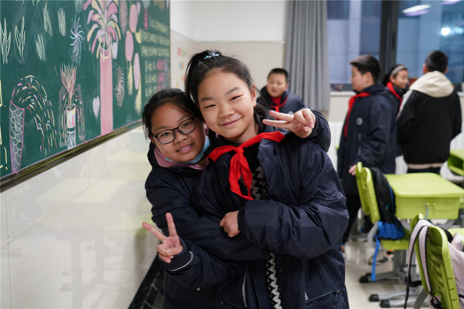 校门口,开学气氛热烈,“吉祥牛”、红地毯、大型拱门、“牛年特写”照相框,手举励志标语牌的校领导和老师、同学们,让家长和孩子们倍感亲切、温暖、祥和。校前广场,孩子们兴奋地与“吉祥牛”来一个“爱的抱抱”,在“好好学习,天天向上”的“牛年特写”照相框与父母来一张合影,留下成长路上的精彩瞬间。在教职员工的引导下,家长和孩子们一起走过红地毯,《少年》、《我相信》等歌曲欢快、悦耳,给孩子们创造一个快乐的校园,一个不一样的开学。由教职员工组成的“温暖之手”团队,引路、扛行李、耐心解答,给学生和家长提供最细致的服务。