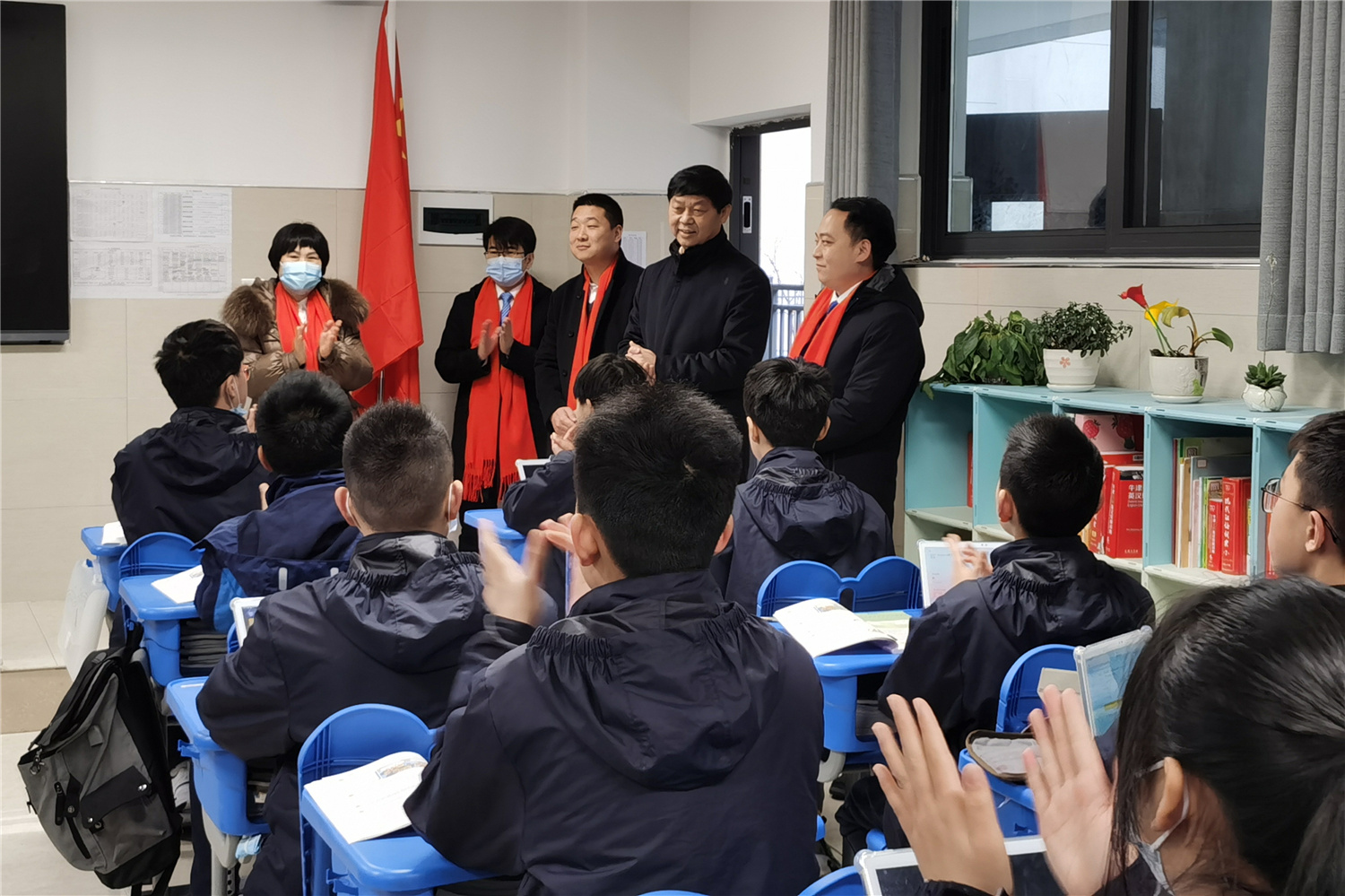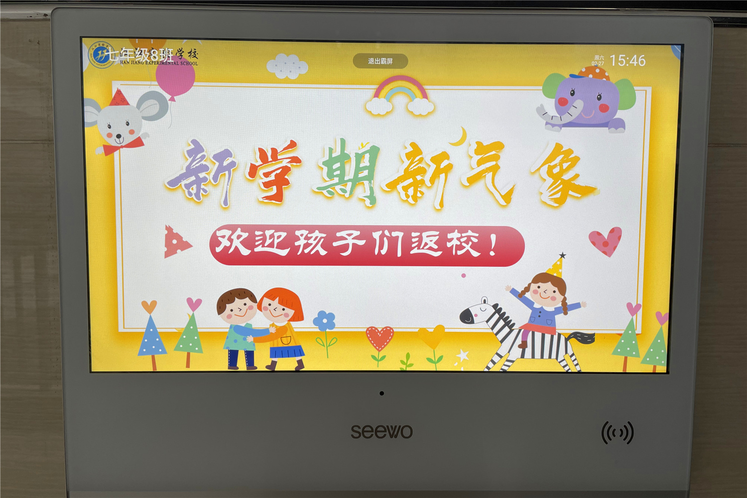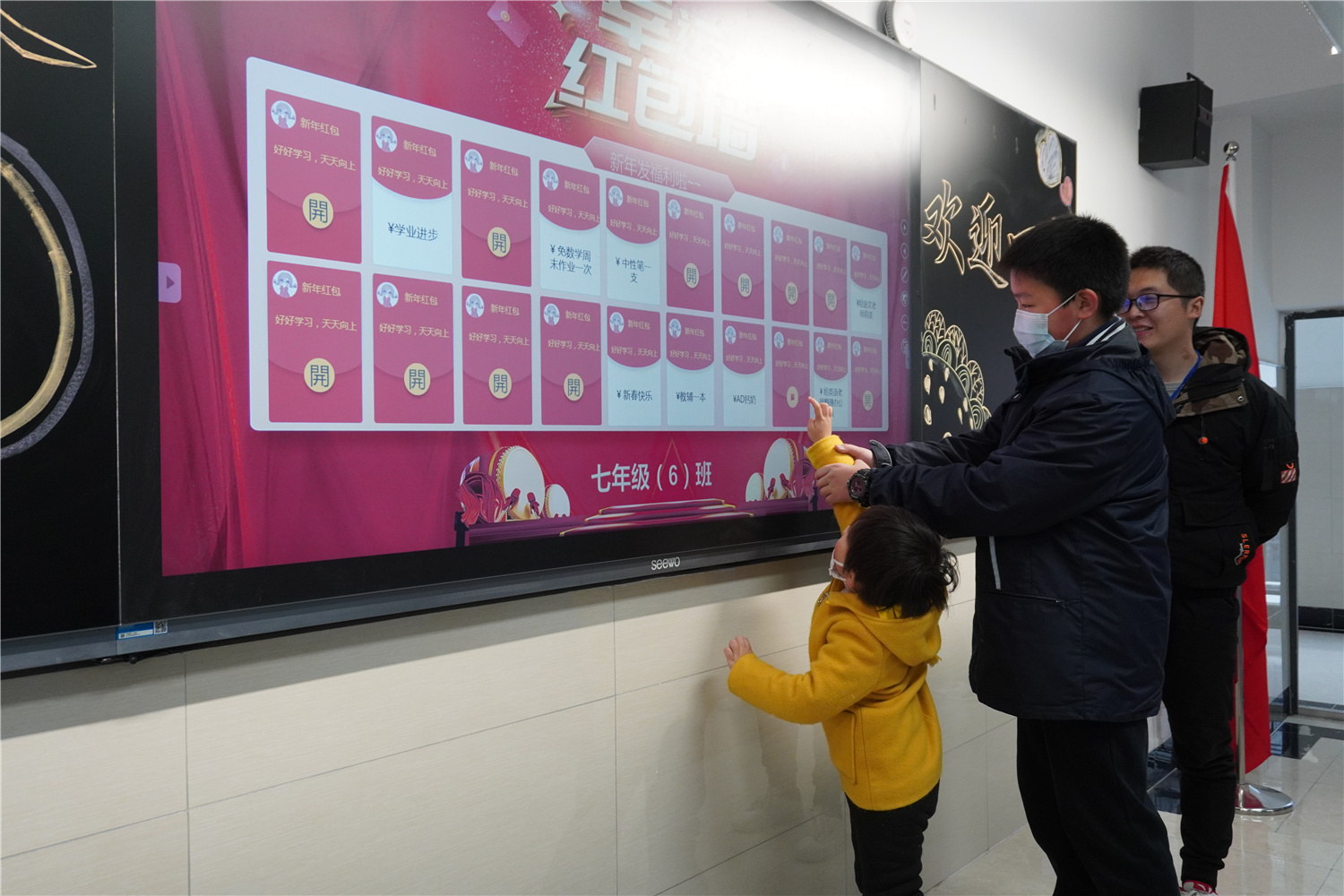 教室里,老师们利用希沃智慧黑板制作了新学期祝福抽奖活动,每个孩子可像抽取“盲盒”一样,领取属于自己的神秘奖励。“免责劵一张”、“免数学周末作业一次”、“给老师整理办公桌”等开学红包,让孩子们感到既新奇又充满乐趣,家长们纷纷点赞老师们的创意和用心。校长朱仕竹,副校长陈磊、王宇、陈伟、张旭东等领导也来到小学、初中各班级,为孩子们送来温暖的问候。