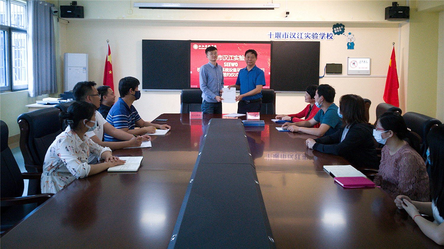 十堰市教育局在我校召开“十堰市2020年中小学教育信息化建设与应用推进会”。我校校长朱仕竹作《建设现代5G校园,探索新型教育模式》工作汇报。