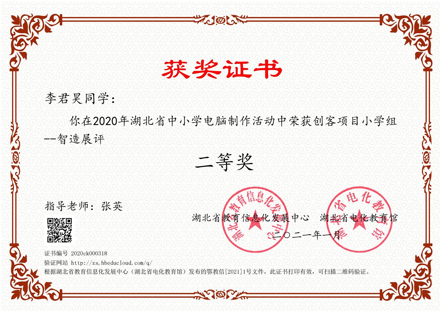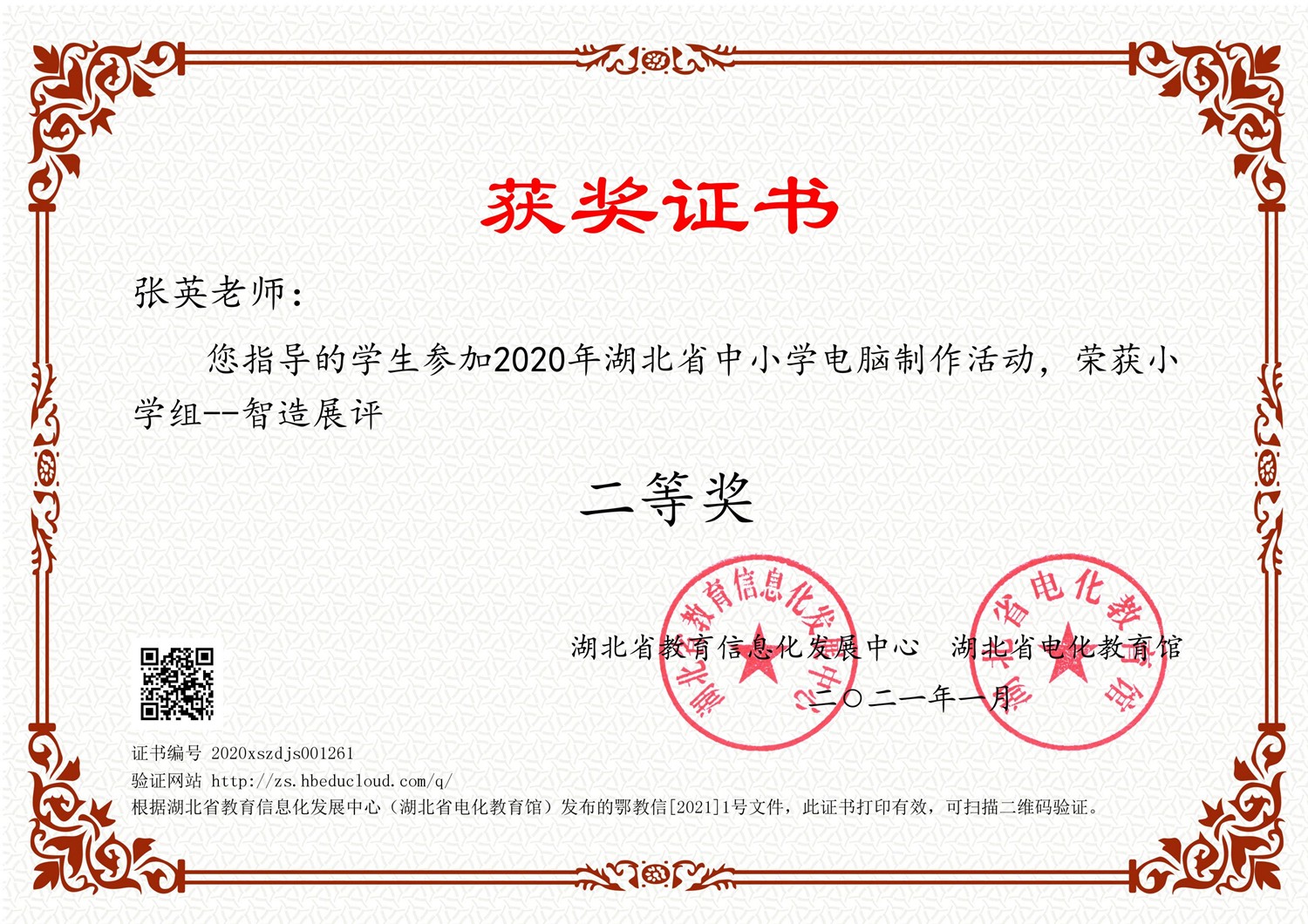 我校教师指导学生在2020年湖北省中小学电脑制作活动竞赛中荣获省级二等奖。
