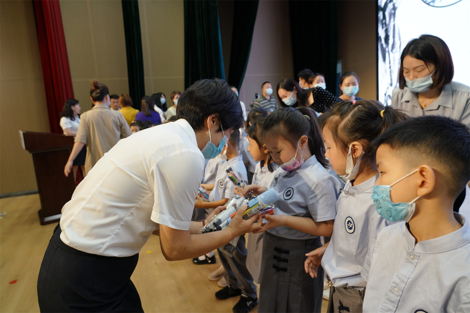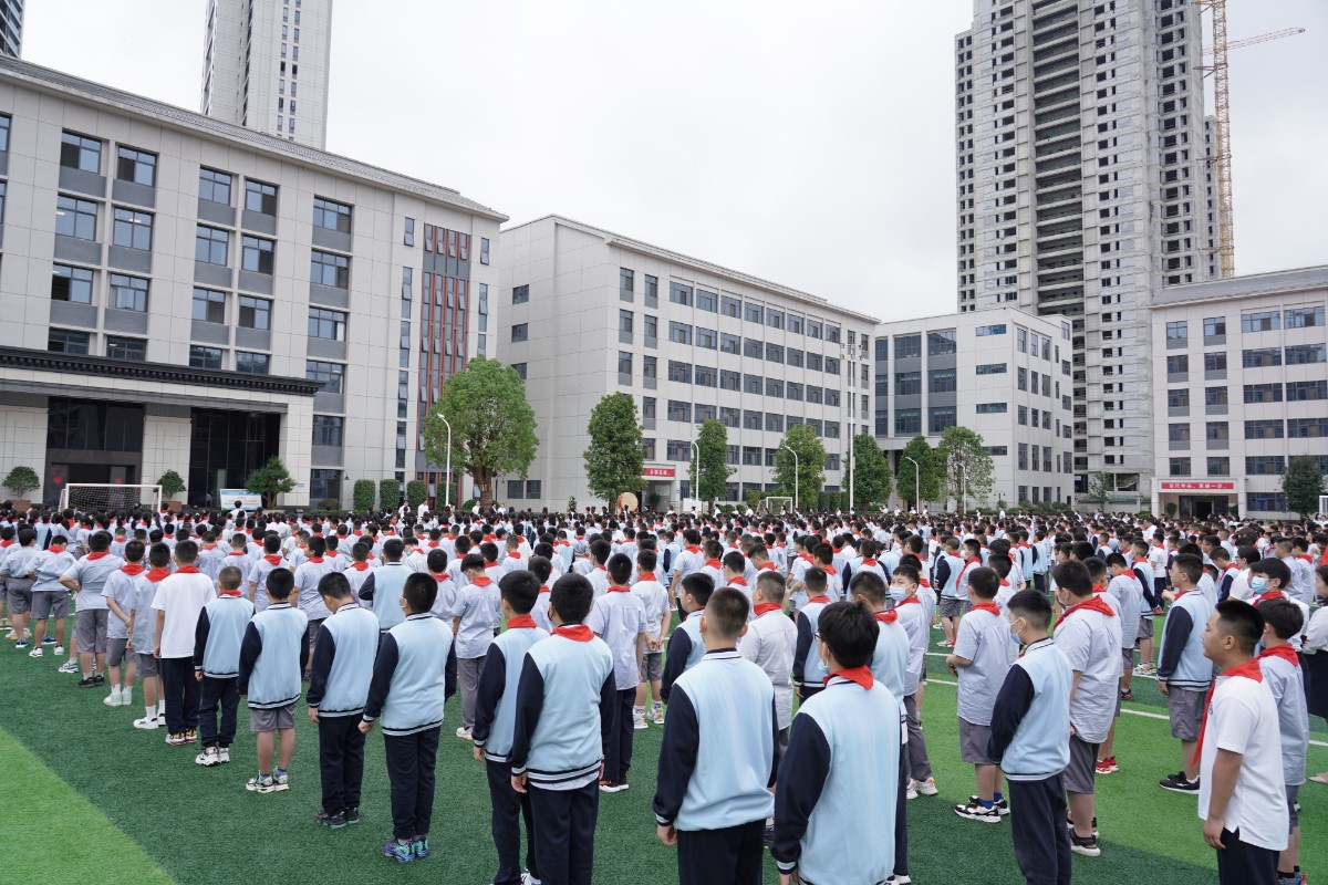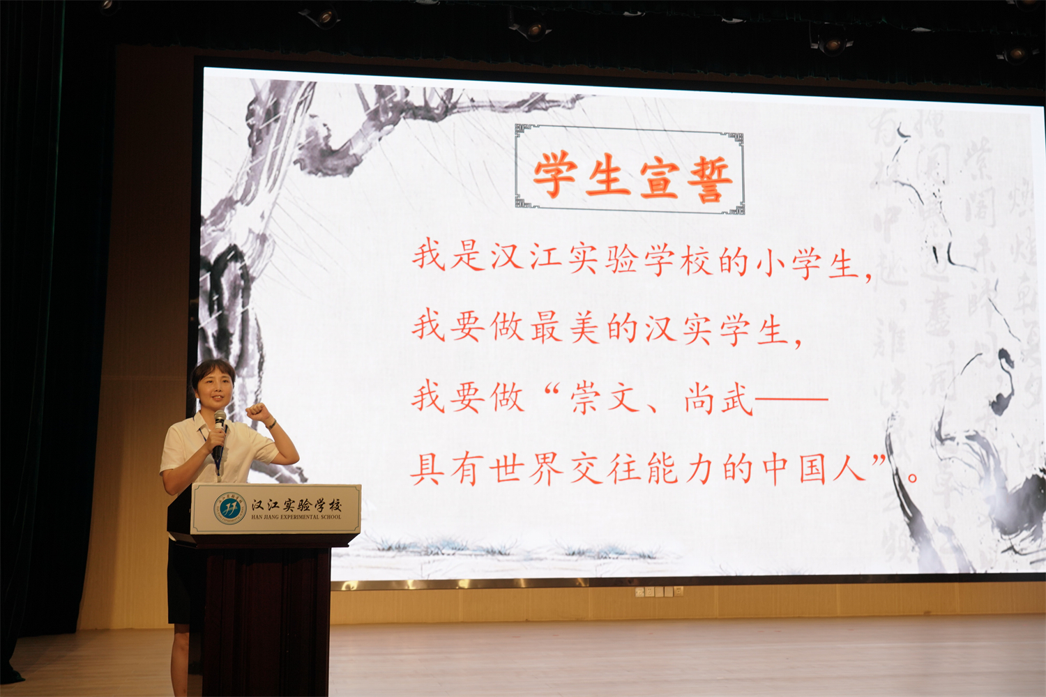 9月1日上午,小学部为一年级新生举行隆重的开学礼。由老师带领一年级同学行拜师礼并宣誓。校长朱仕竹开笔写“人”,并向新生及家长致辞,希望同学们争做“崇文尚武——具有世界交往能力的中国人”。9月1日下午,二至六年级在操场开展了升学礼活动。小学部校长赵延爽击鼓鸣志,班主任为学生们整理仪容仪表,“新老班级”传递班牌,激励着学生们在新学期振奋精神、大放异彩。