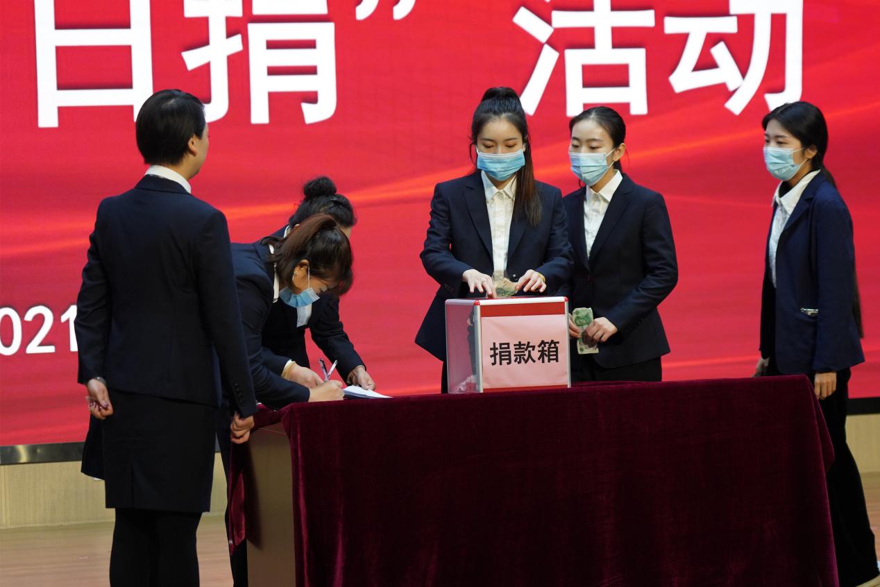 捐款仪式上,我校董事长何蕾、校长朱仕竹带领其他领导及教职工代表积极捐款,未到场的教职工以部门为单位踊跃参与,奉献爱心。慈善一日捐,汉实人人捐。