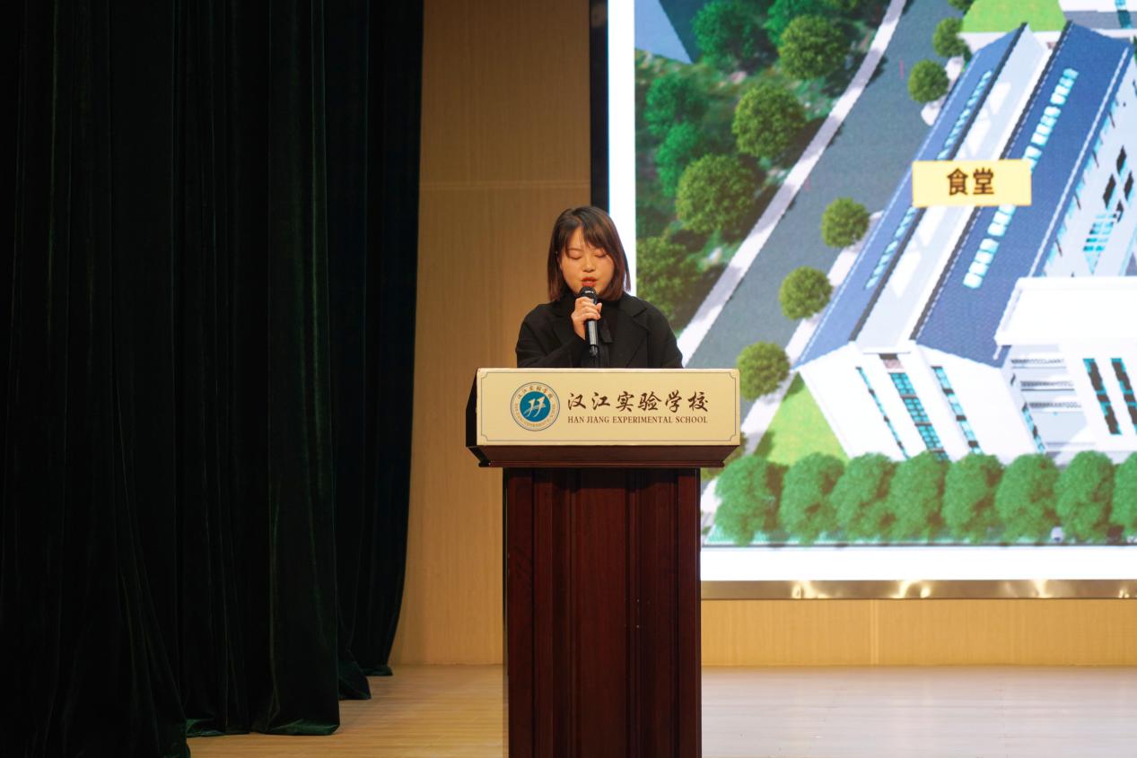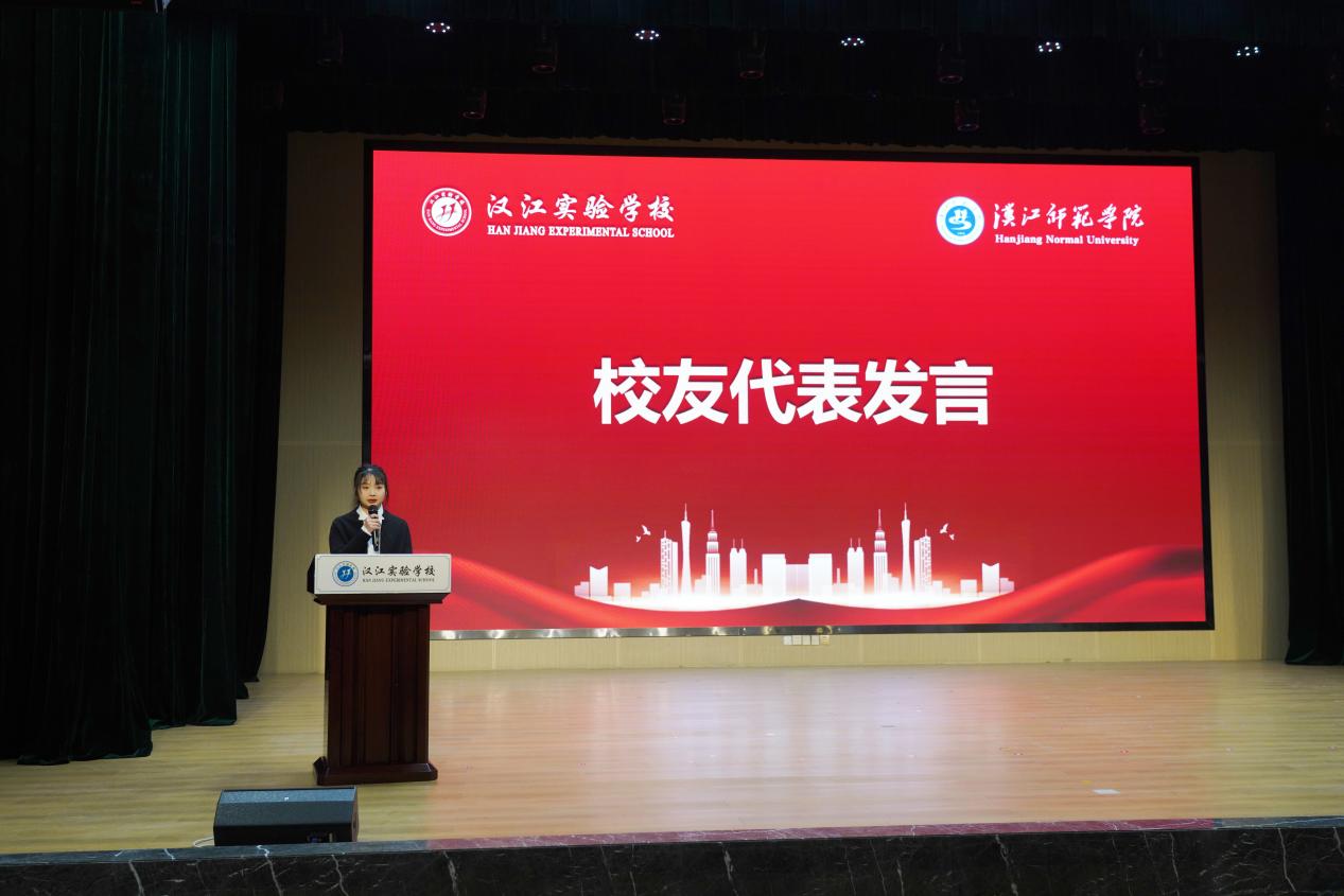 我校初中部教师钟易均和小学部教师马璐瑶代表汉江师范学院毕业校友,分享了在汉江实验学校的工作感悟和成长点滴,表达了他们对汉实的坚定选择、坚持热爱和未来坚守。他们希望学弟学妹怀揣对社会的责任感、求知向上的信念和一颗感恩的心努力追逐梦想,做一名合格的人民教师。
