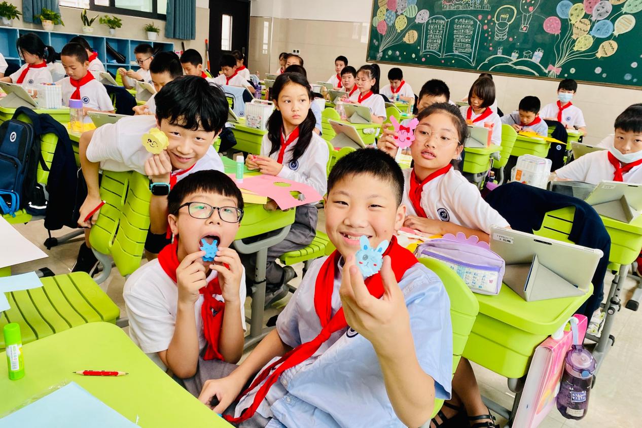各学科教研组着眼于作业设计的优化,为不同学段的学生设计适合他们的特色作业。英语特色作业通过做手工的方式,让学生们手脑协作,加深英语知识的学习;数学特色作业通过多元化的作业形式,激发学生学习数学的兴趣;美术特色作业以有趣的主题,让学生们天马行空完成画作。“双减”特色作业设计,让学生们在准备作业、完成作业的过程中,思维有提升、习惯有进步、兴趣有增强,将课堂生态由“学得”转化为“习得”,有效减轻了课业负担。