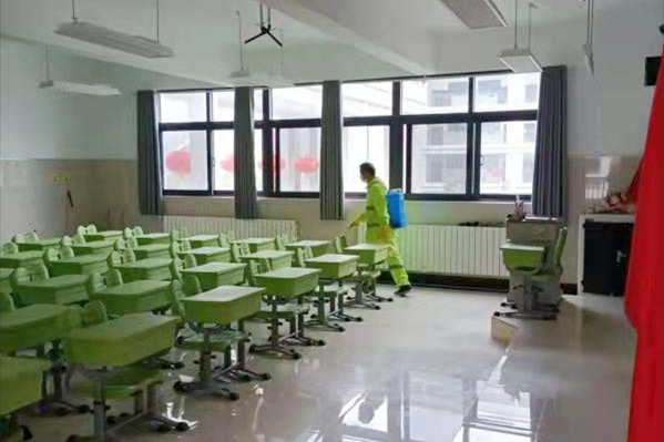 综合服务部的工作人员提前对全校所有区域进行全面防疫消杀,检修所有教室和宿舍的设施设备,营造健康、卫生、整洁、优美的学习办公环境。