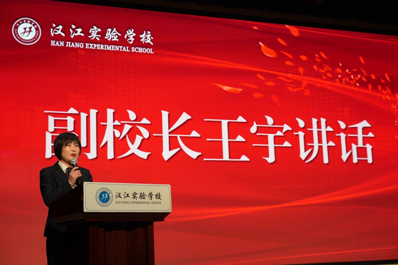 副校长王宇展望未来,她表示,汉江实验学校将紧跟课改的步伐,认真学习领会“双减”政策,围绕学校工作思路,继续加强教师队伍建设,强化教学常规管理和研究,不断提高教学质量;继续落实“五项管理”,扎实开展智慧课堂教学模式研究,提高教学效率,为学生的全面发展、终身发展奠定基础。