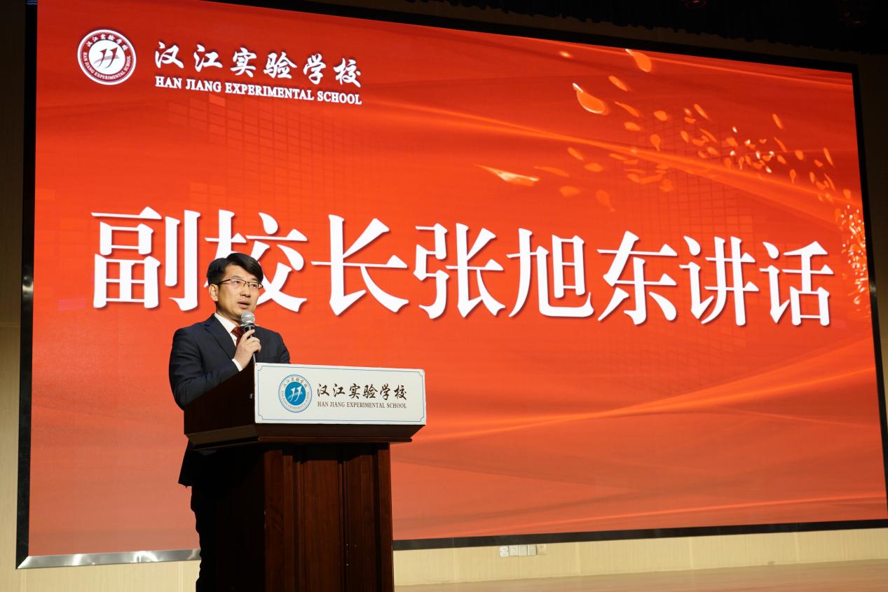 副校长张旭东展望了新学期的各项工作,力争校办、科宣、食堂、综合服务等工作迈向新高度、达到新水平,学生研学、教师培训、家长合育的三大中心工作迈出新步伐。深化《北京师范大学——汉江实验学校教学质量提升项目》推进,努力为学生的成长、教师的发展、家长的关切做好精致化服务工作。