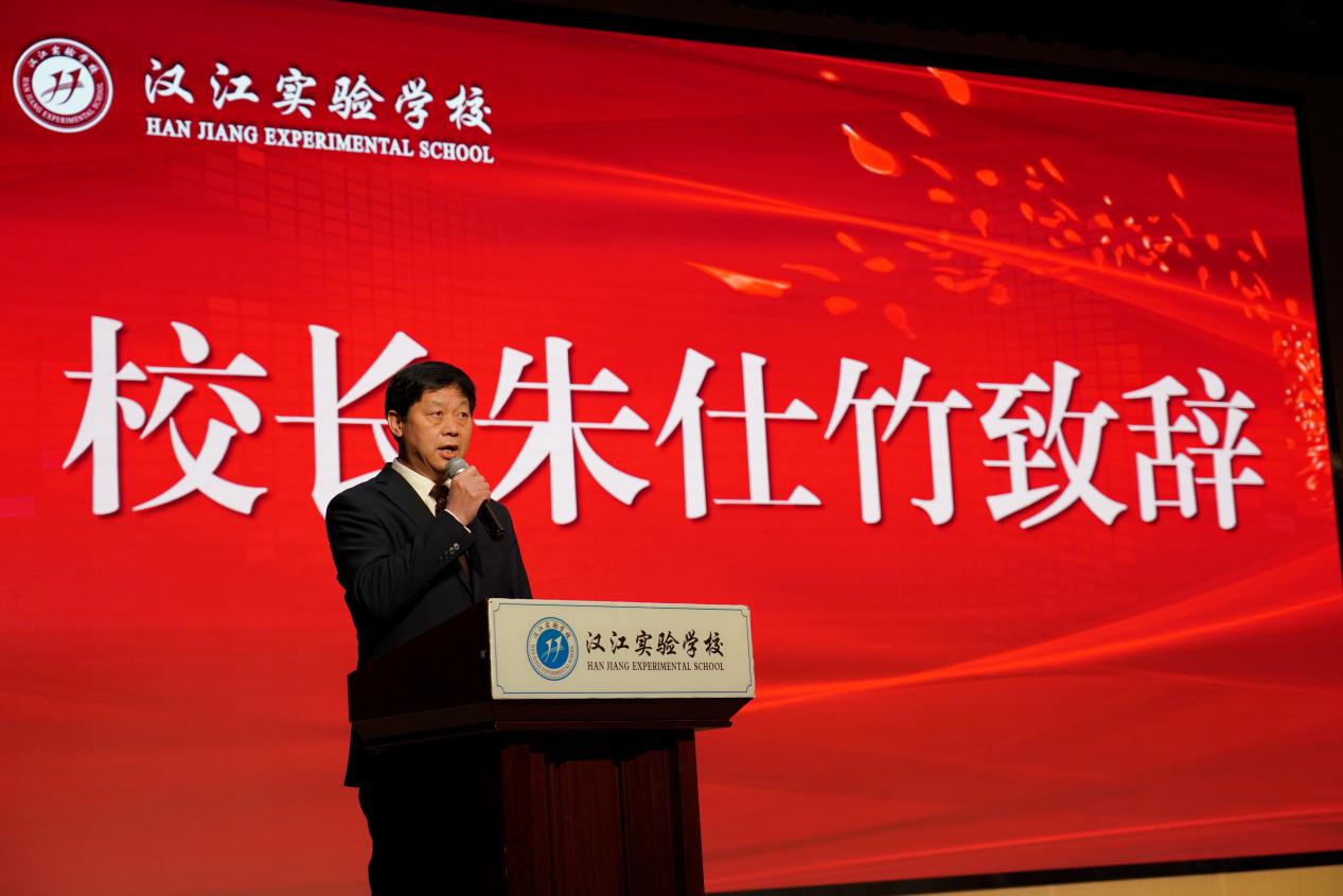 校长朱仕竹致辞,他表示,自2020年9月1日开学以来,我校逐步成长为拥有74个教学班,近2600名学生,300多名教职工的较大规模学校。新学期,我校将继续夯实发展基础、提升办学实力、加强品牌建设、促进内涵发展、脚踏实地抓质量、勤勤恳恳搞教学、兢兢业业搞服务。朱校长希望汉实学子听党话,跟党走,志存高远,刻苦学习,强健体魄,团结友爱,敢于创新;汉实教师要用“四有教师”的标准严格要求自己,创造“唯生、唯实、唯品”的汉实文化特色,务实进取,努力工作,获得自身事业发展和学生学业进步的双丰收。我校也将继续努力,与汉实家长一道研究教育,科学育儿,真正架起家校共育的桥梁。