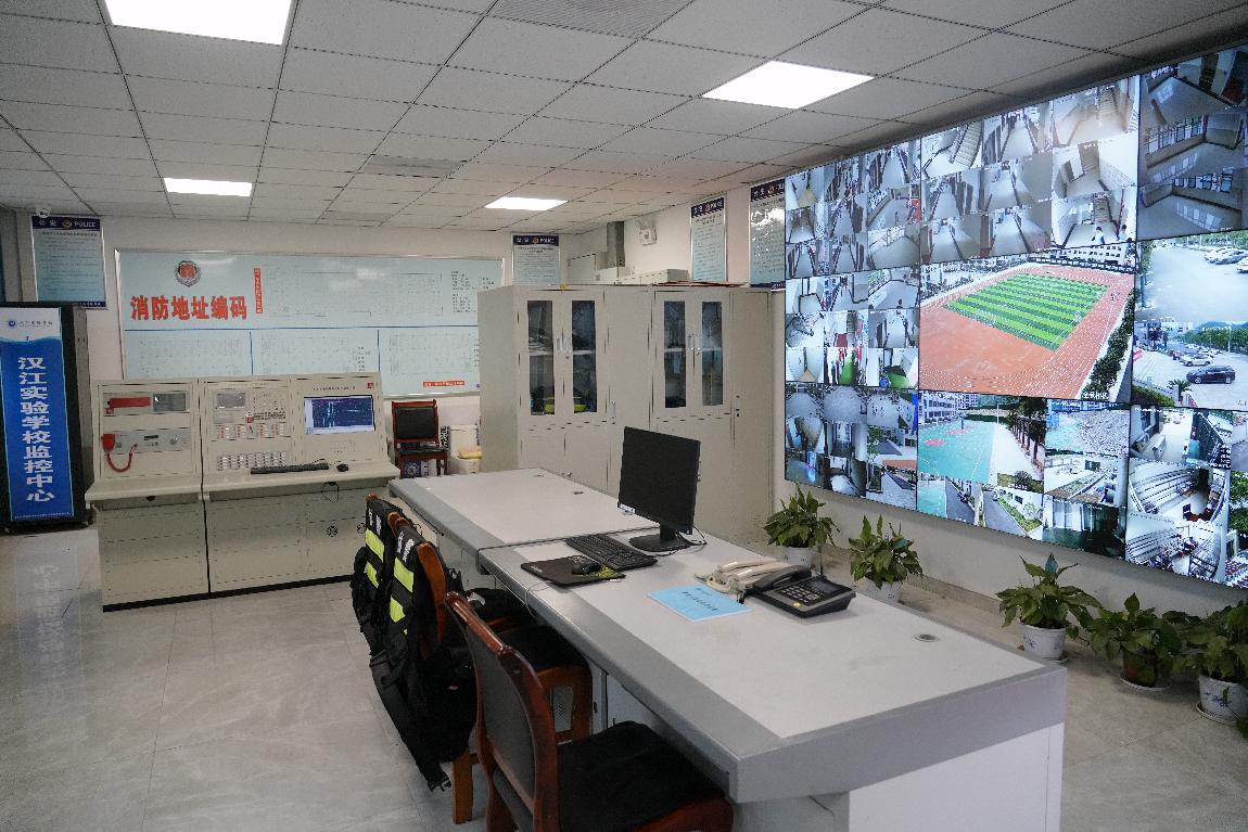 在安防工作管理方面,我校成立“校园保安大队”,严格实行保安员招聘、培训、使用、管理暂行规定,保证校园安保工作更好推进。我校还借助5G智慧校园的便利,启用智能人脸识别门禁系统、一键紧急报警装置、视频监控系统与属地公安机关联网等功能,充分发挥智慧安防系统的强大作用,守好校园安全的第一道关。