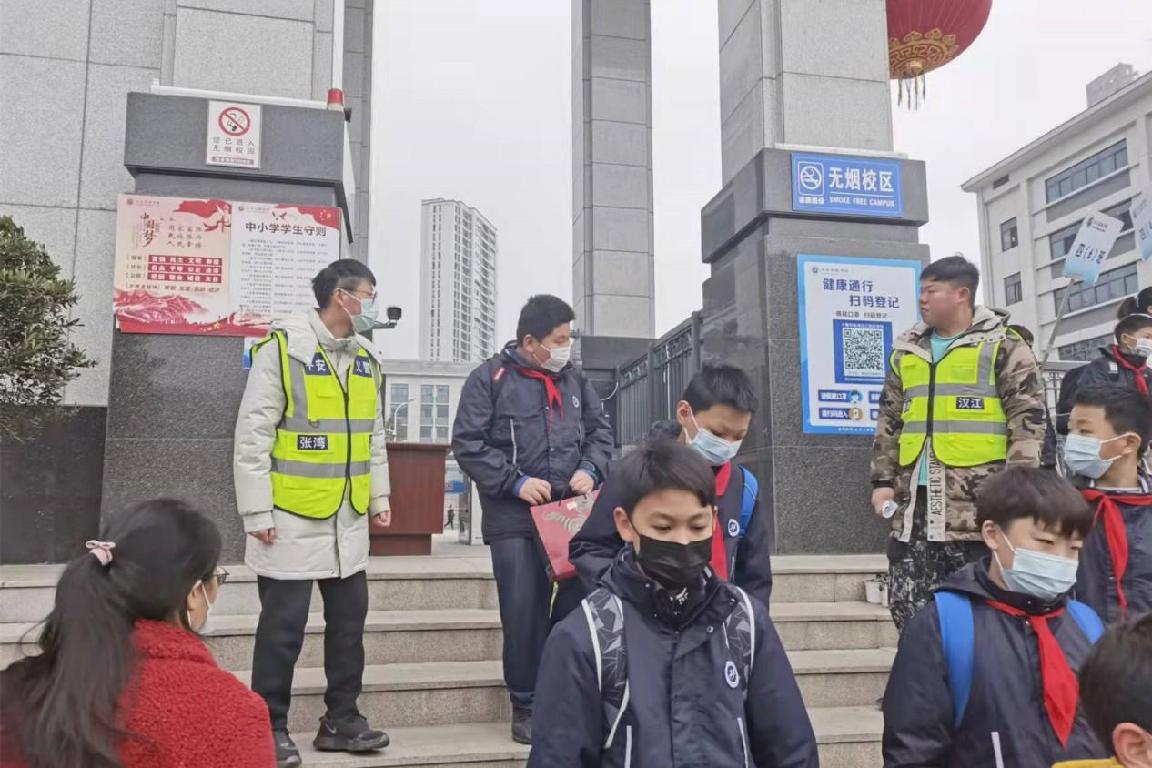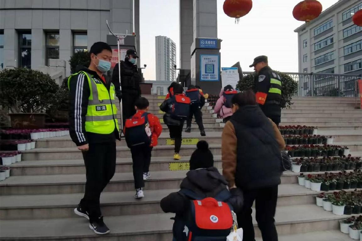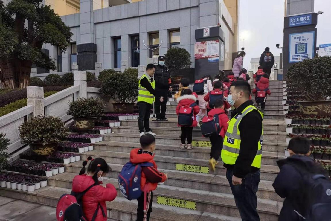 在日常工作中,我校校警及安保人员工作认真负责,在校门口与家长耐心沟通交流,时时刻刻将学生的安全放在首位,多次得到家长们的认可和称赞。同时,我校特设立贴心护校队,在上学放学期间守护每个孩子安全入校、平安离校。