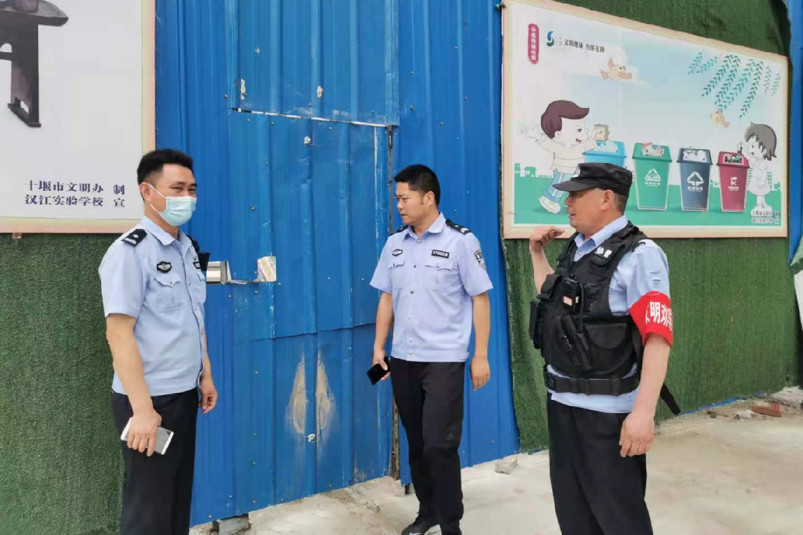 汉江路派出所副所长曹留阳和汉江实验学校校长朱仕竹(右一)