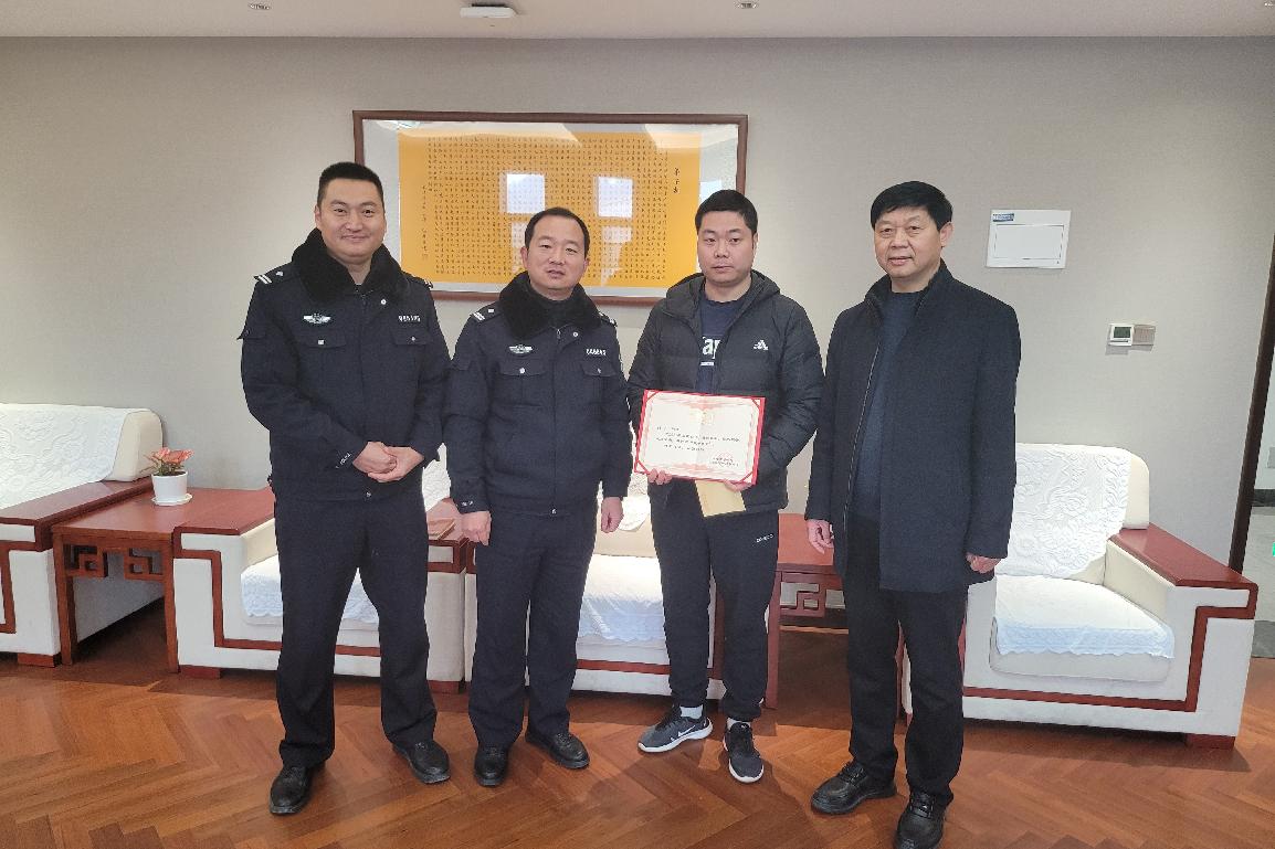 为校警刘宁(右二)颁发荣誉证书
