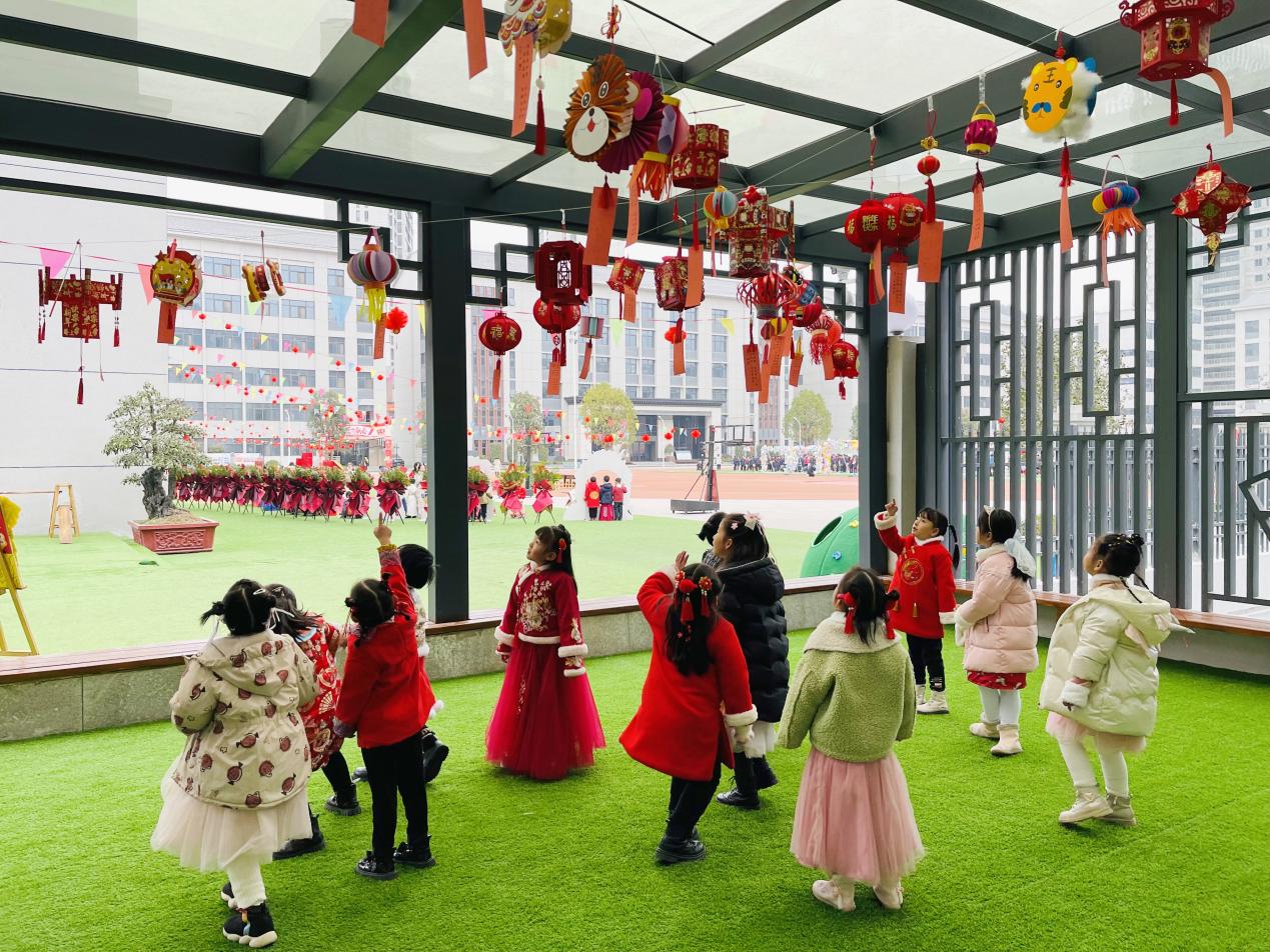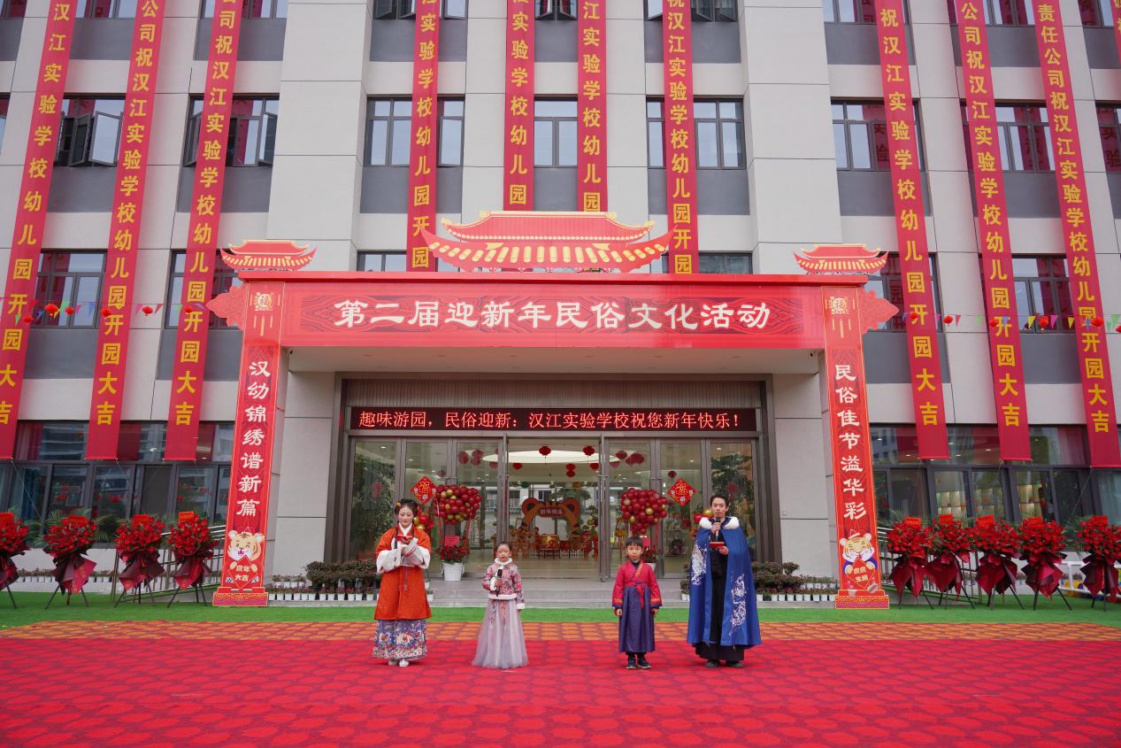 汉江实验学校幼儿园举行“迎新年民俗文化活动暨新园开园活动”。春联、福字、红灯笼、小窗花......绚丽多彩的新年装扮遍布幼儿园新园的每个角落。