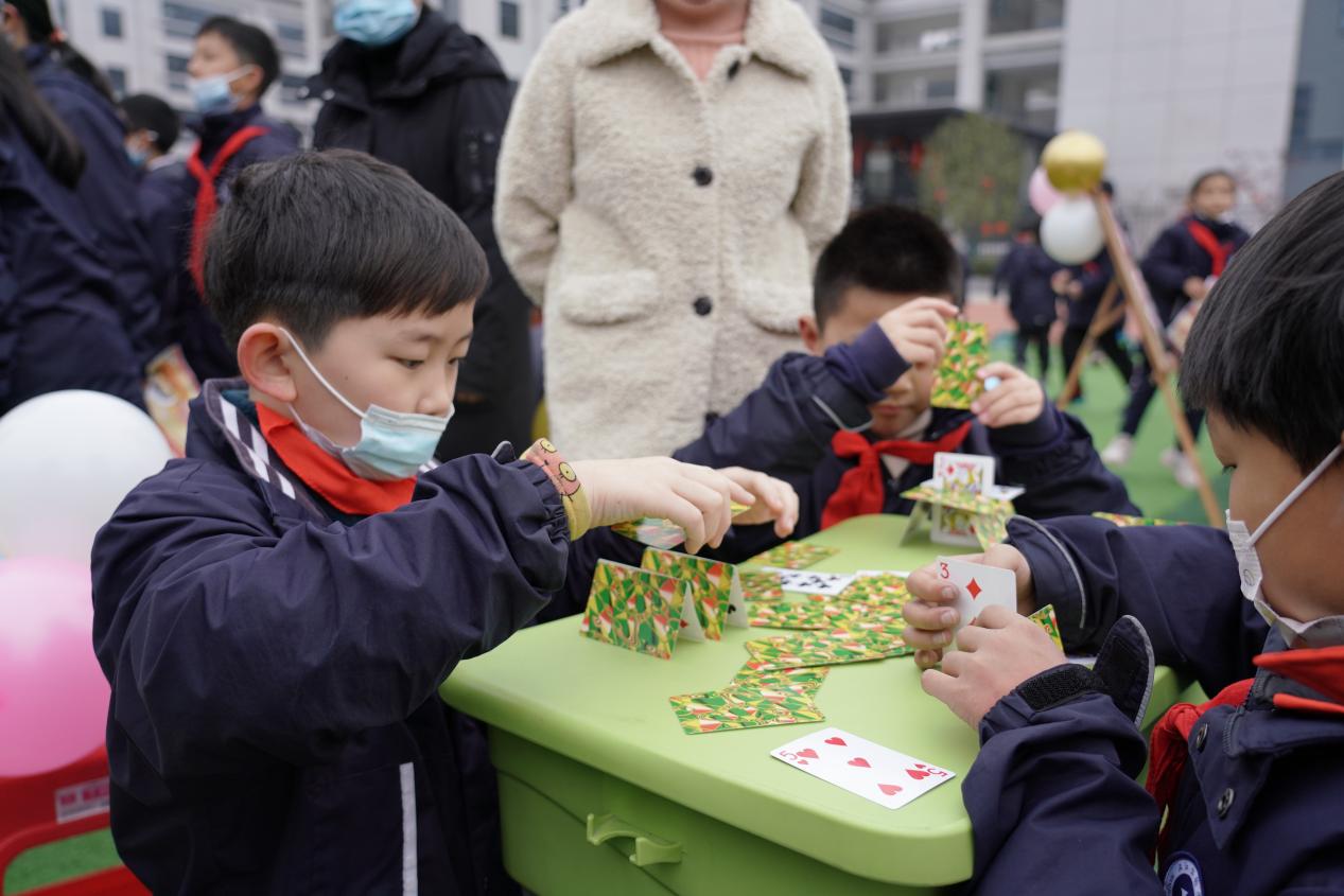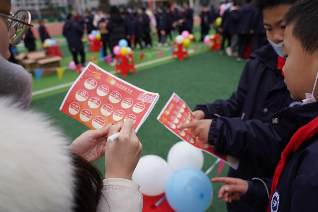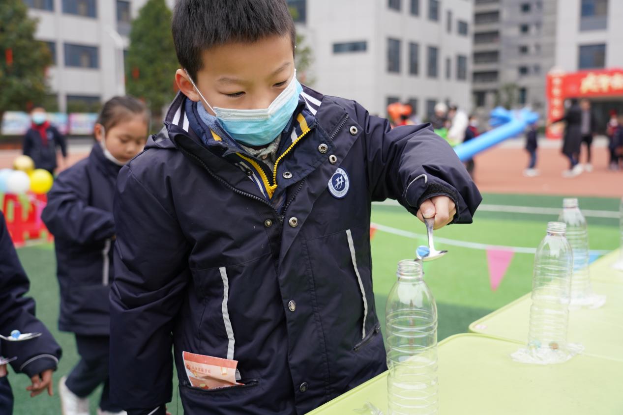 汉江实验学校小学部举行“在快乐中学习,在学习中成长”庆元旦游园会活动,飘扬的三角彩旗、童趣的气球拱门将游园会的氛围烘托得热闹非凡。操场上,分区域设置了盲人击鼓、幸运套圈、掌上明珠、趣味保龄球、桌面吹青蛙等28个不同的游戏项目,同学们各显身手、不甘示弱,积极参与游戏。欢笑声、加油声、呐喊声此起彼伏,整个操场幻化成了一片欢乐的海洋。同学们在游园卡上积累通关等级,从而获取终极大奖。