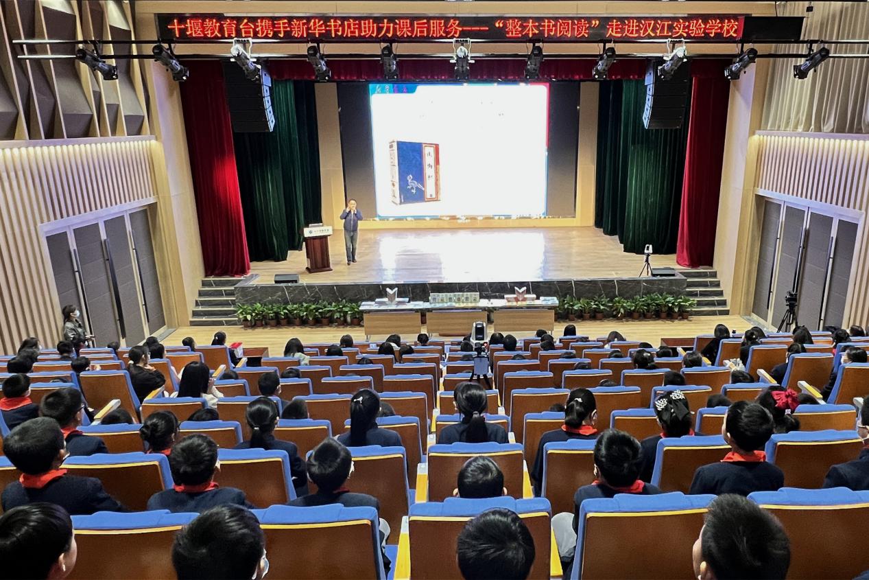 为培养中小学生阅读的习惯,弘扬优秀传统文化,筑牢文化自信的根基,汉江实验学校小学部组织学生踊跃参与2022年“新华书店杯•假期读一本好书”活动,并取得佳绩。4月14日,“读响校园,书香汉实”整本书阅读分享会暨颁奖活动在汉江实验学校报告厅开展,高级儿童阅读指导师、儿童学习能力训练师、国家二级心理咨询师、整本书导读课核心编委陈德意老师到场指导,汉江实验学校校长朱仕竹,小学部校长赵延爽、教学副校长朱凤莲、德育副校长乔晖莉、小学语文组全体老师及五年级学生参与。