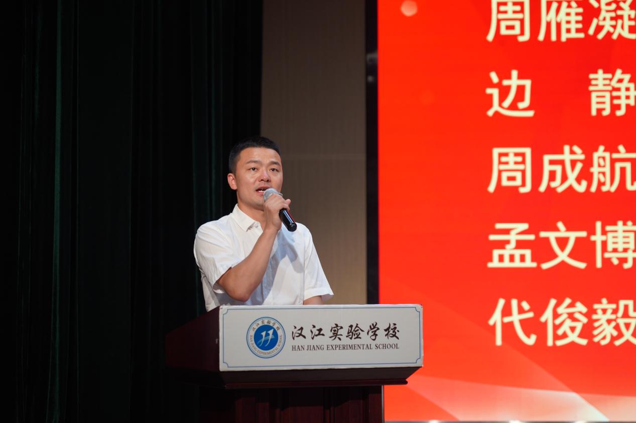 校长朱仕竹致辞,他对家长们对汉实的支持与配合、理解和信任表示感谢,对同学们在汉实勤奋向上、刻苦学习、绽放青春表示欣慰。新时代中国青年,要有家国情怀,也要有人类关怀,发扬中华文化崇尚的四海一家、天下为公精神,为实现中华民族伟大复兴而奋斗!他希望同学们珍藏在汉实的难忘岁月,牢记老师的谆谆教诲,牢记父母的殷切期望,继续秉承“崇文尚武——做具有世界交往能力的中国人”的核心理念,不断沉淀、不断积累、不断完善自己,让自己有力量、有温度、有光芒,温暖他人,照亮自己;用健康乐观的心理和积极的心态去面对未来,追寻人生无限广阔而美好的前景。
