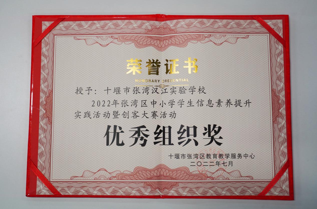 近期,2022年张湾区中小学学生信息素养提升实践活动暨创客大赛落下帷幕。我校在参赛的31所学校中崭露头角,荣获该大赛优秀组织奖,我校派出的14支参赛代表队斩获3个一等奖,9个二等奖,2个三等奖,信息技术教师张英、宁珊珊荣获优秀指导教师奖。