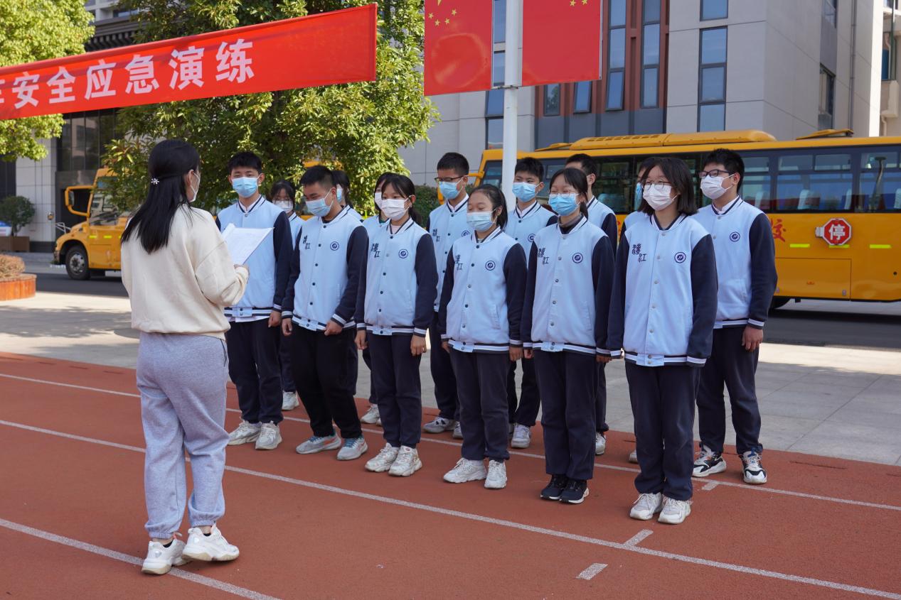 为进一步加强校车安全管理,做好校车交通事故预防工作,增强校车驾驶员及广大师生应对突发事件的能力,2022年10月22日,我校特邀请十堰市交管支队五大队郑先伟主任,亨运集团安技科副总邹云芳、业务科副总龙思翰来校指导校车安全应急演练。汉江实验学校校长朱仕竹,副董事长、副校长陈伟,副校长陈磊、王宇、张旭东,工会主席江玲等领导出席,全体初中部师生参与演练。活动由综合服务办主任李勇主持。