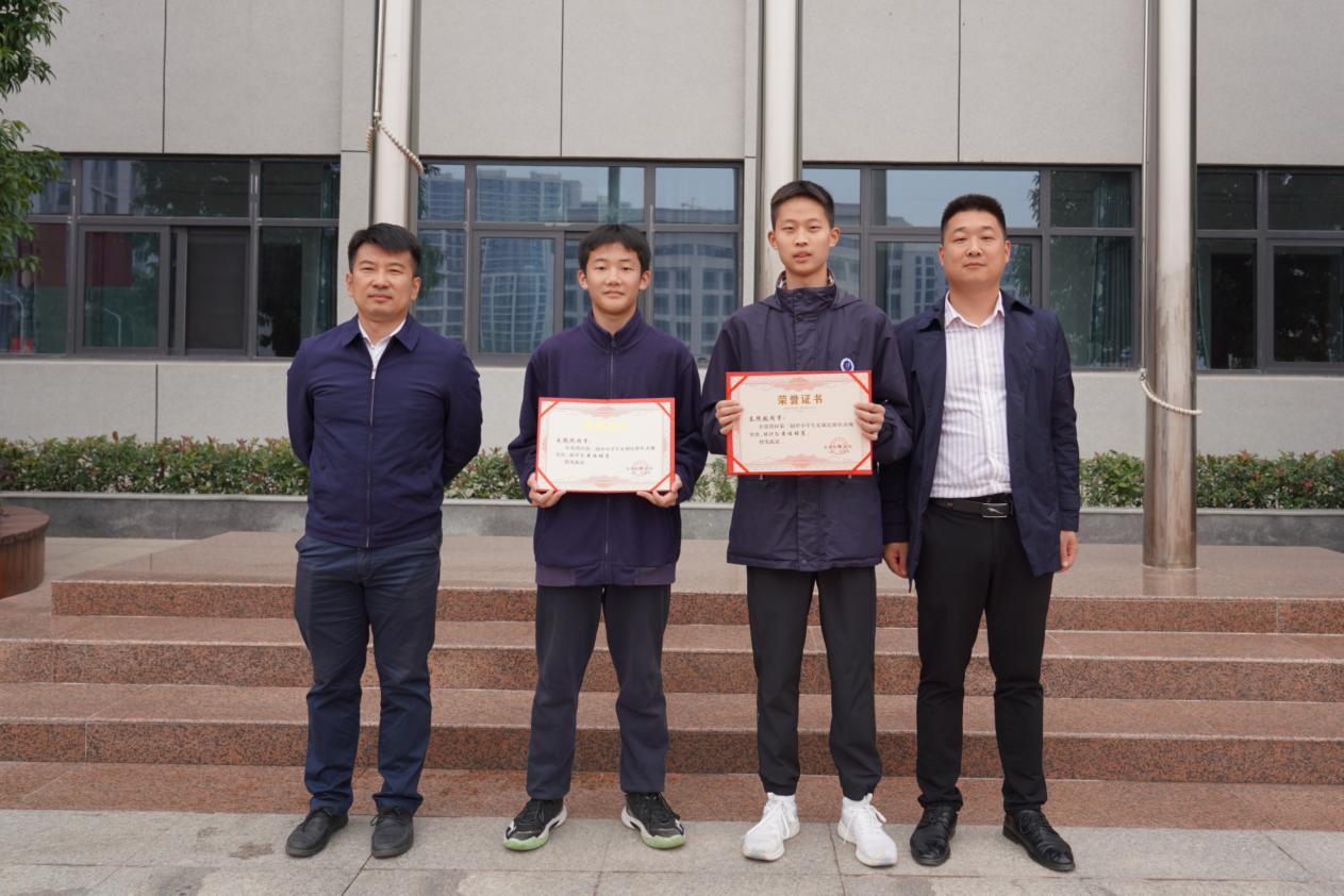 副校长陈磊、张旭东为获奖学生颁奖